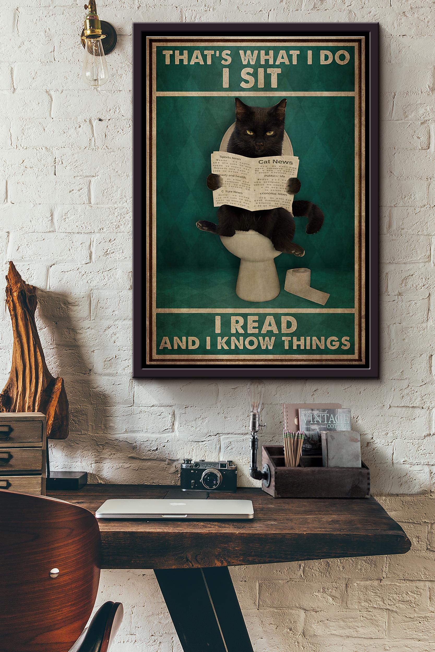 Cat Toilet Thats What I Do I Sit I Read And I Know Things Poster Framed Matte Canvas