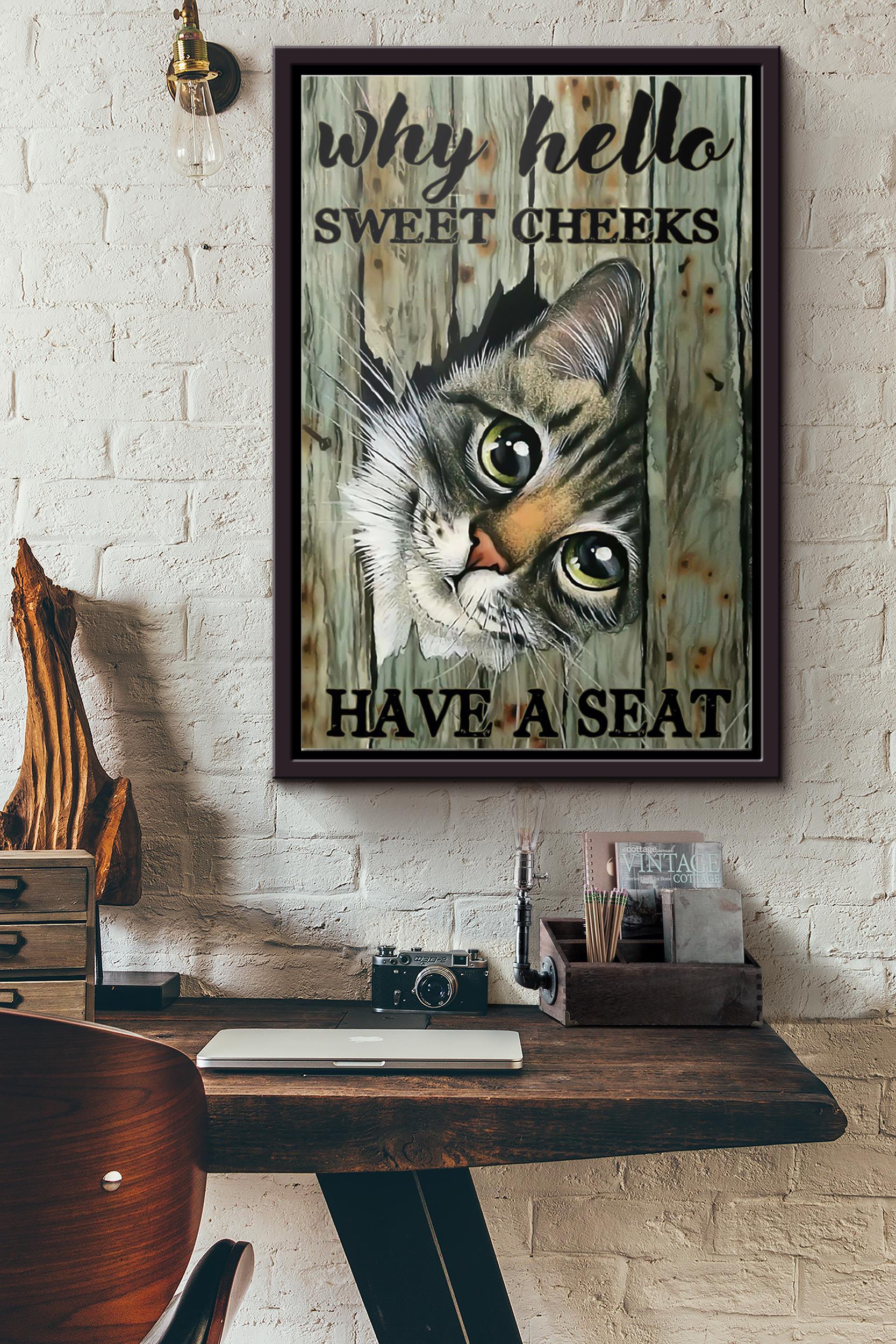Cat Why Hello Sweet Cheeks Have A Seat Poster Framed Matte Canvas