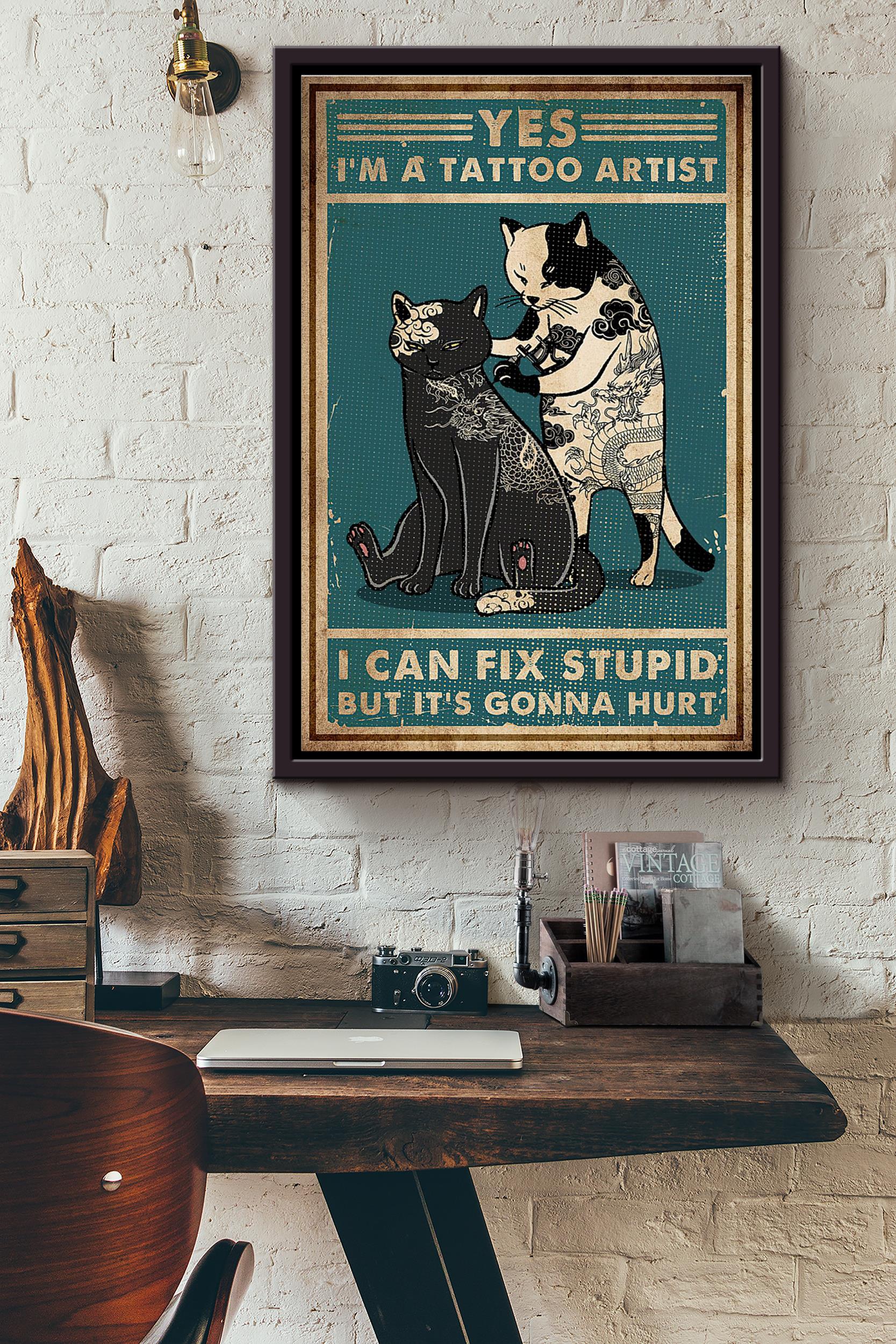 Cat Yes Im A Tattoo Artist I Can Fix Stupid But Its Gonna Hurt Poster Framed Matte Canvas