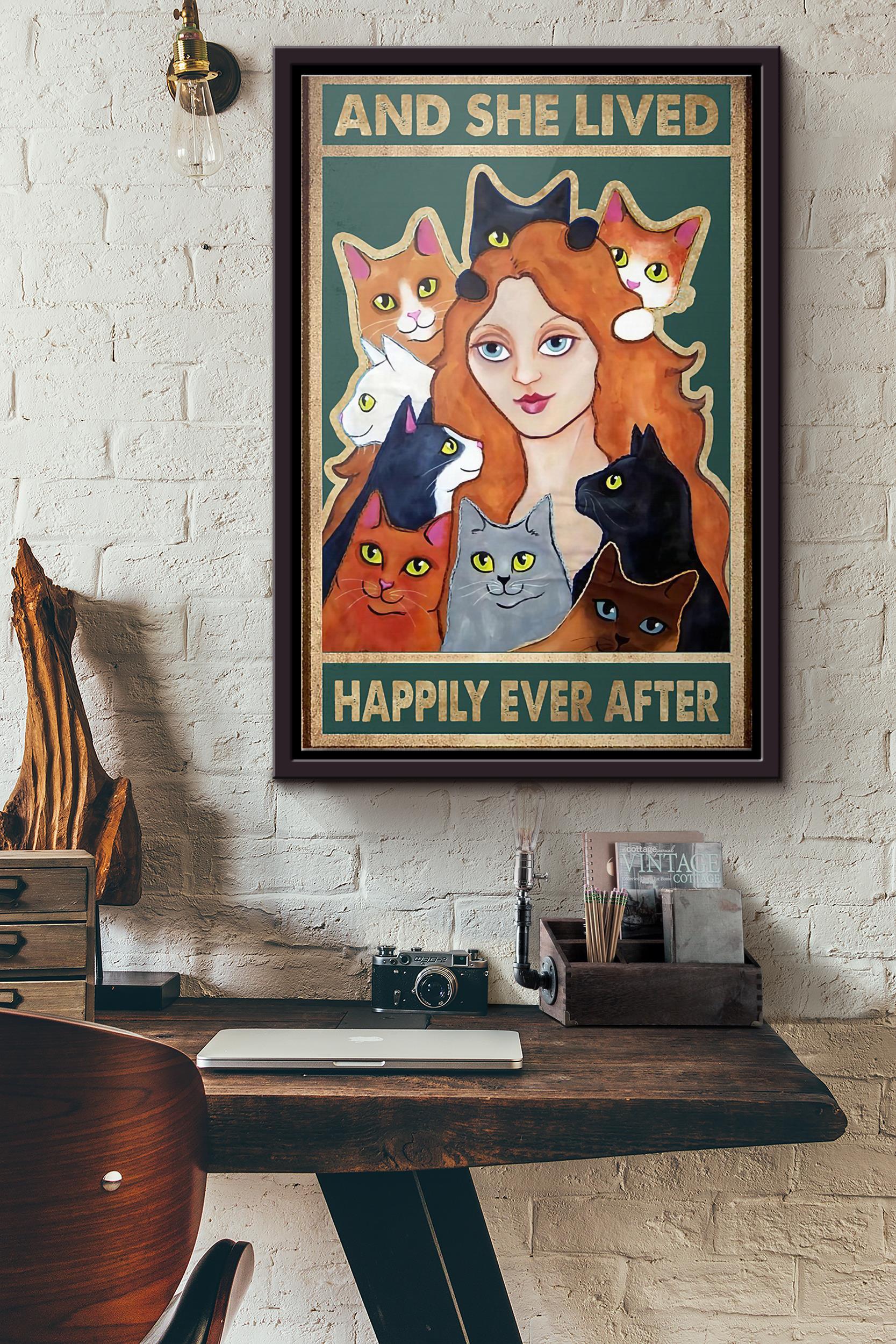 Cats And She Lived Happily Ever After Poster Framed Matte Canvas