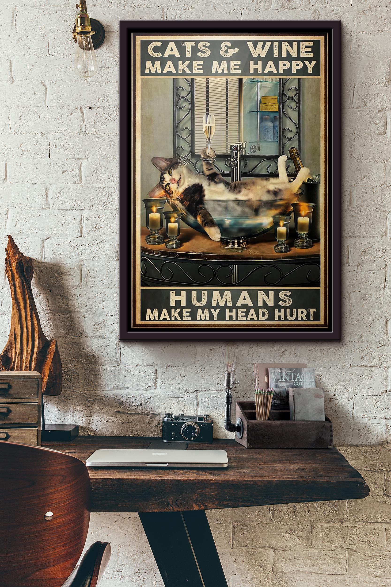 Cats And Wine Make Me Happy Humans Make My Head Hurt Poster Framed Matte Canvas