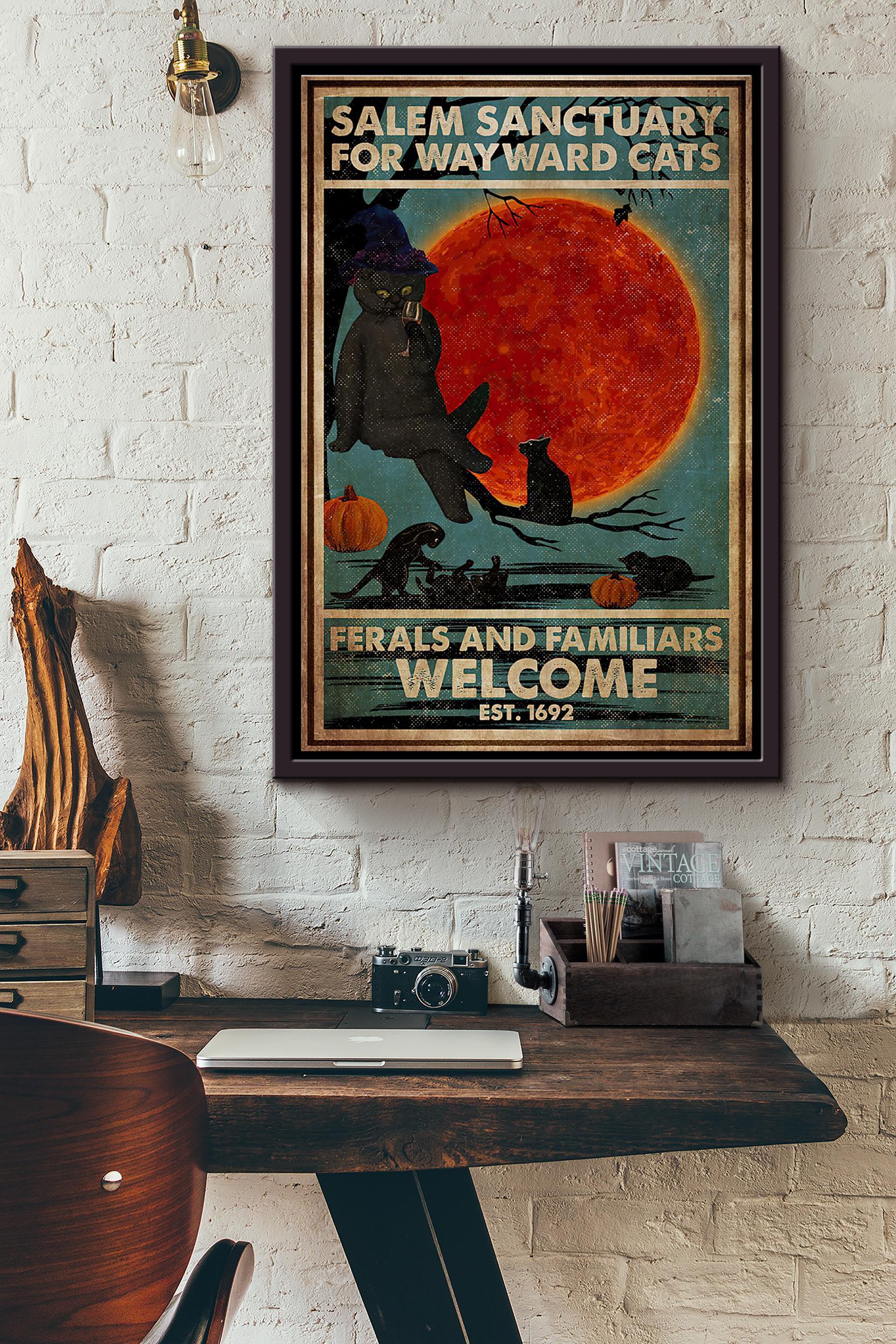 Cats Ferrals And Familiars Witch Blood Moon Pumpkin Poster Framed Matte Canvas