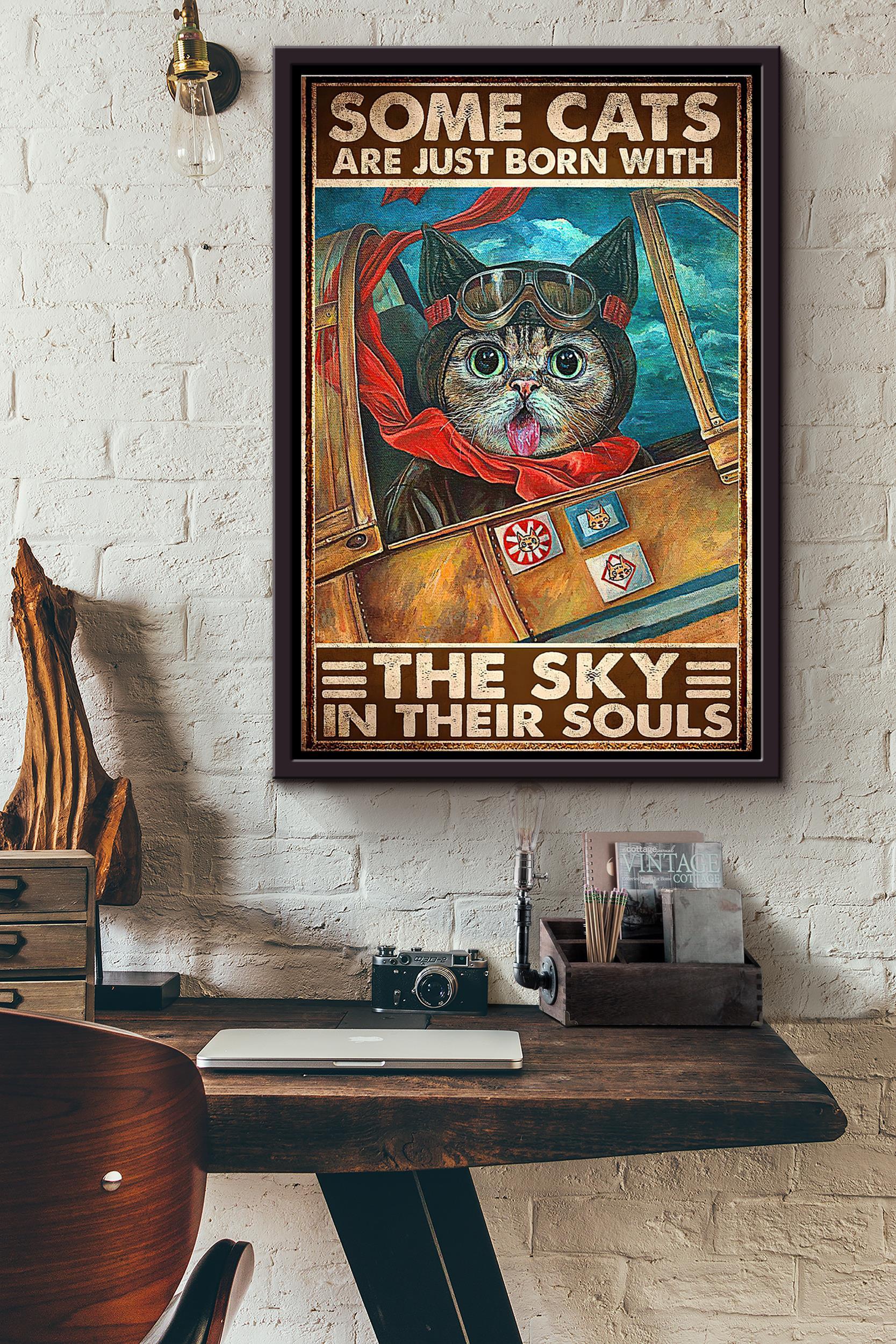 Cats Pilot Some Cats Are Just Born With The Sky In Their Souls Poster Framed Matte Canvas