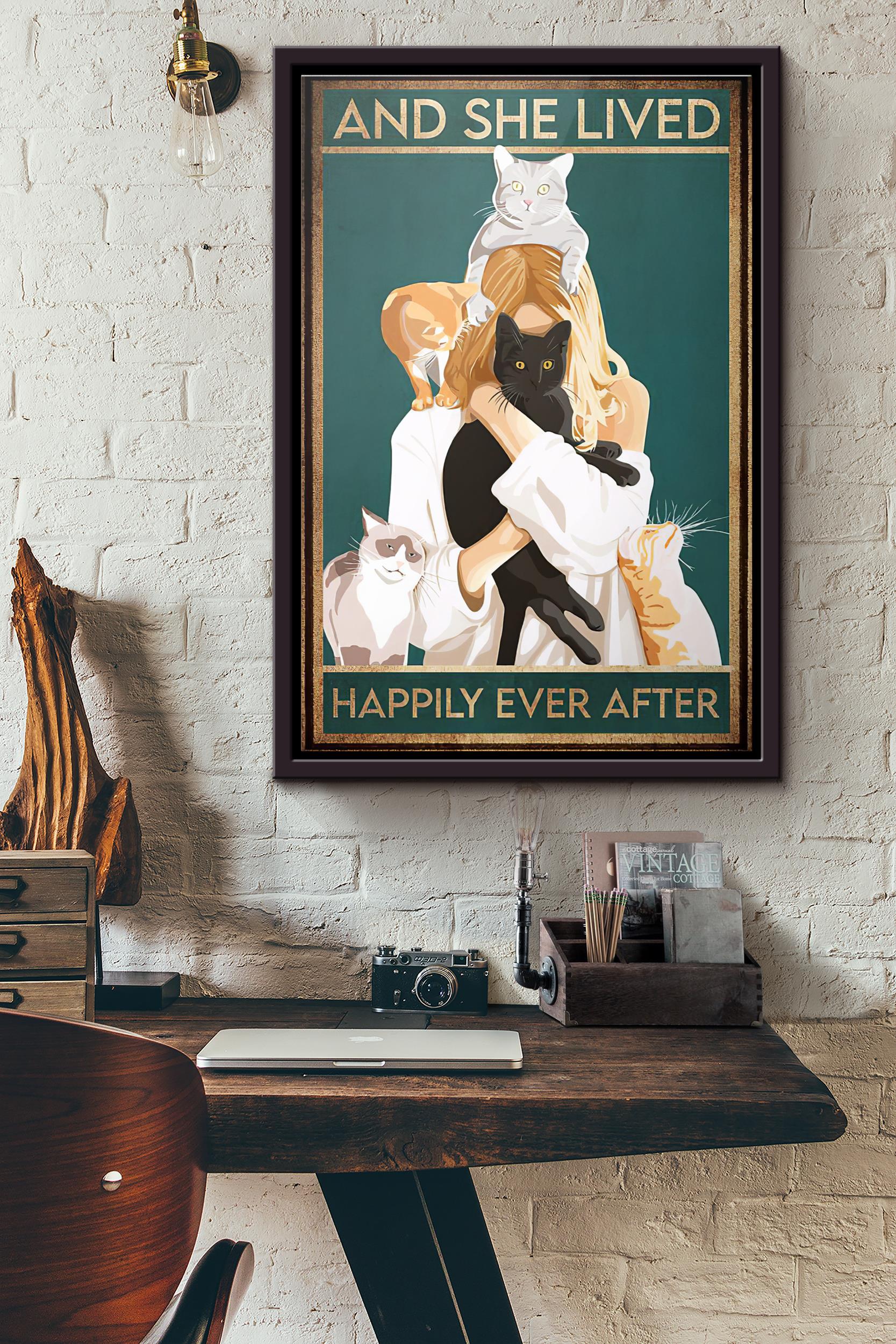Cats Veterinarian And She Lived Happily Ever After Poster Framed Matte Canvas