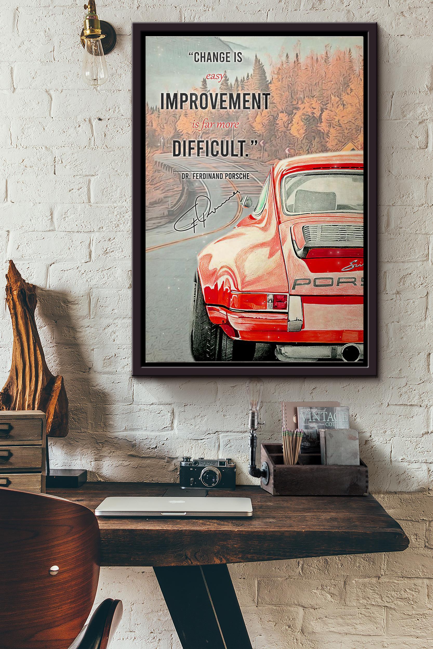 Change Is Easy Improvement Is Far More Difficult Dr Ferdinand Porsche Poster Framed Matte Canvas
