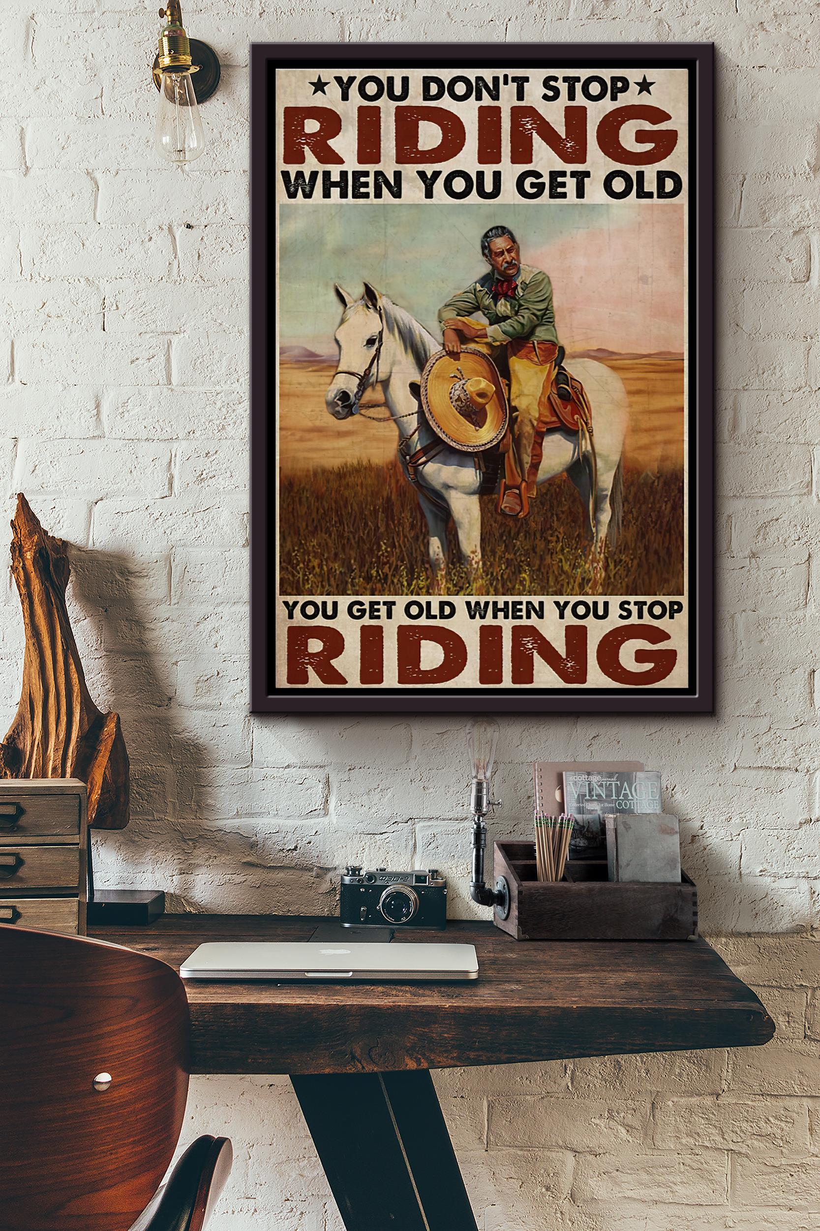 Charro You Dont Stop Riding Horse When You Get Old Poster Framed Matte Canvas