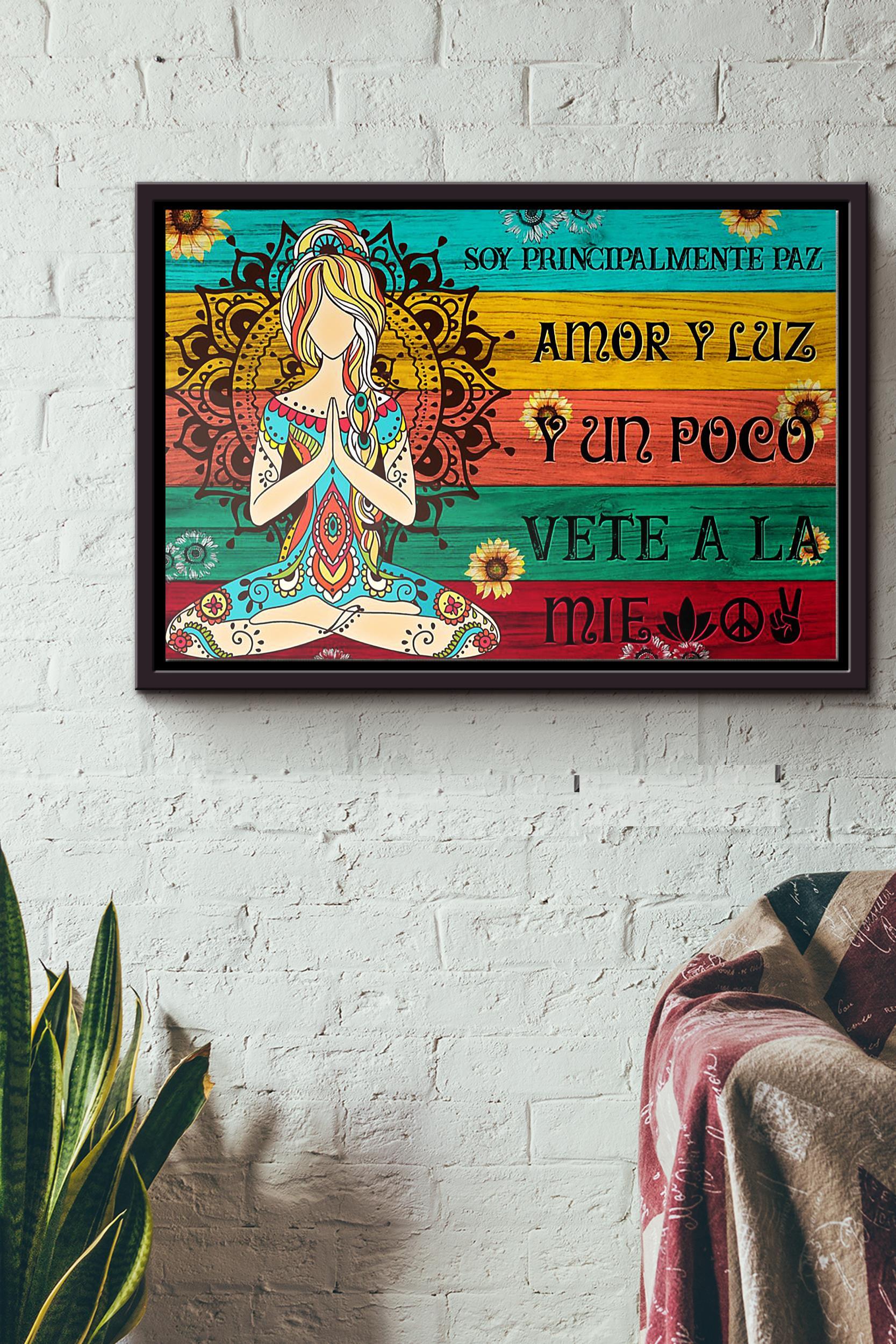 Chica De Yoga Soy Pringcipalmente Paz Amor Y Luz Poster N Framed Matte Canvas