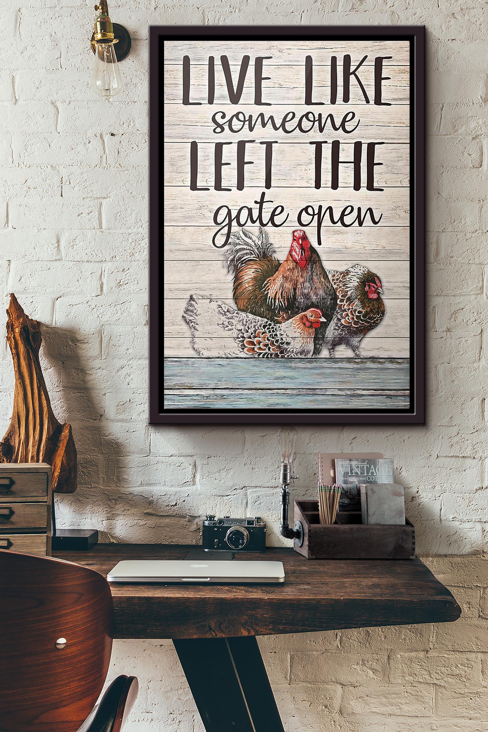 Chicken Live Like Someone Left The Gate Open Poster Framed Matte Canvas