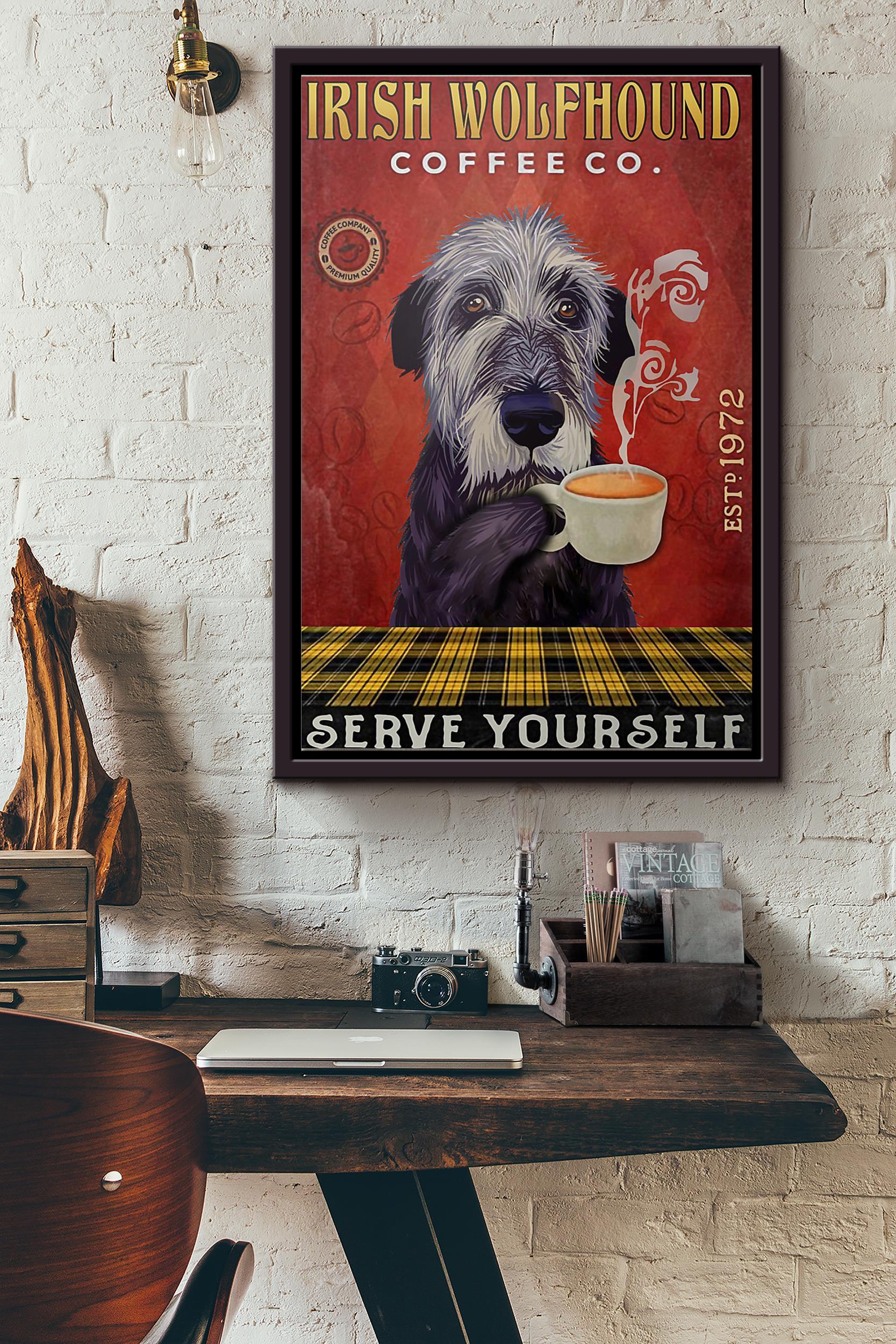 Coffee Company Irish Wolfhound Serve Yourself Poster Framed Matte Canvas
