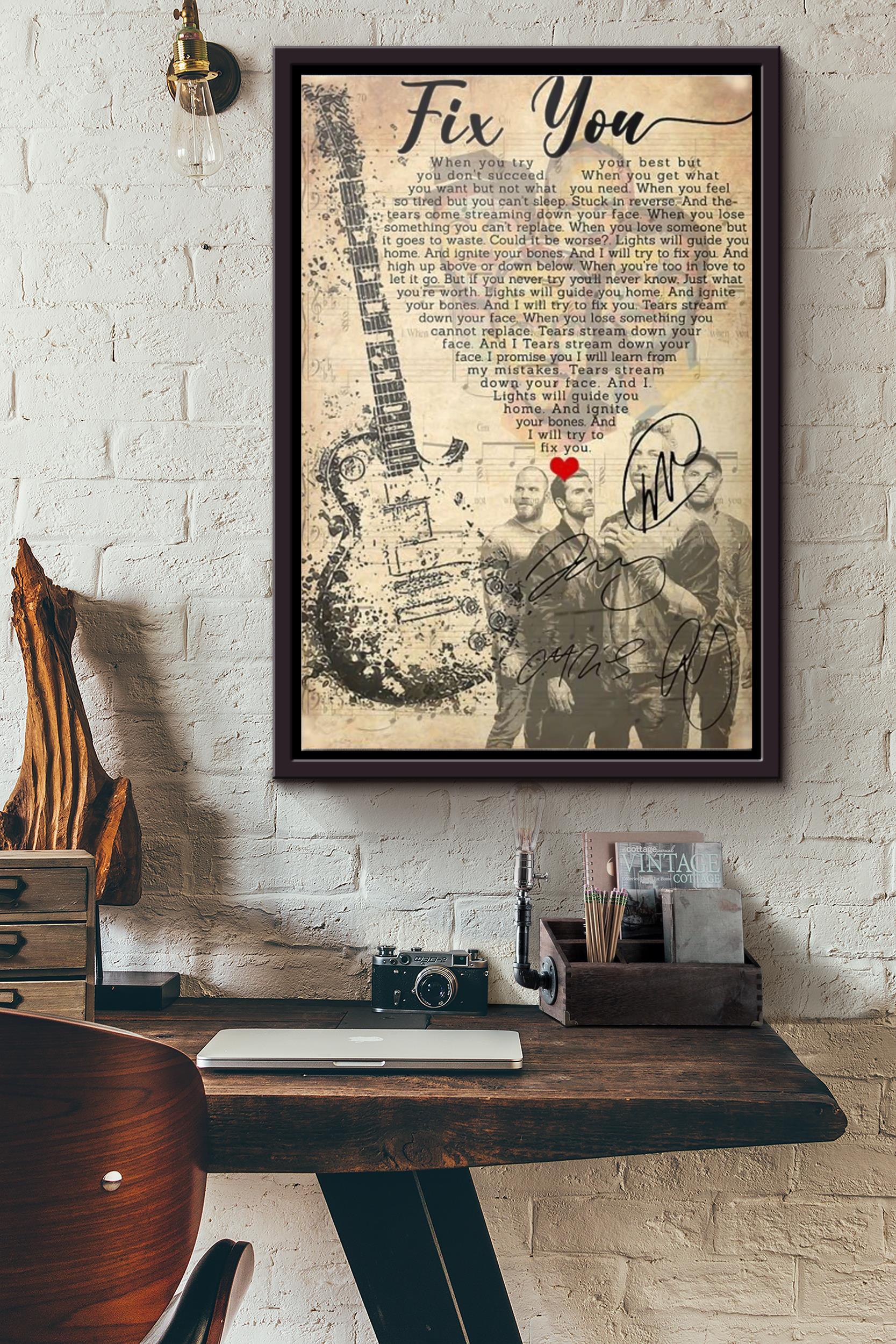 Coldplay Signature Fix You Lysics Poster Framed Matte Canvas