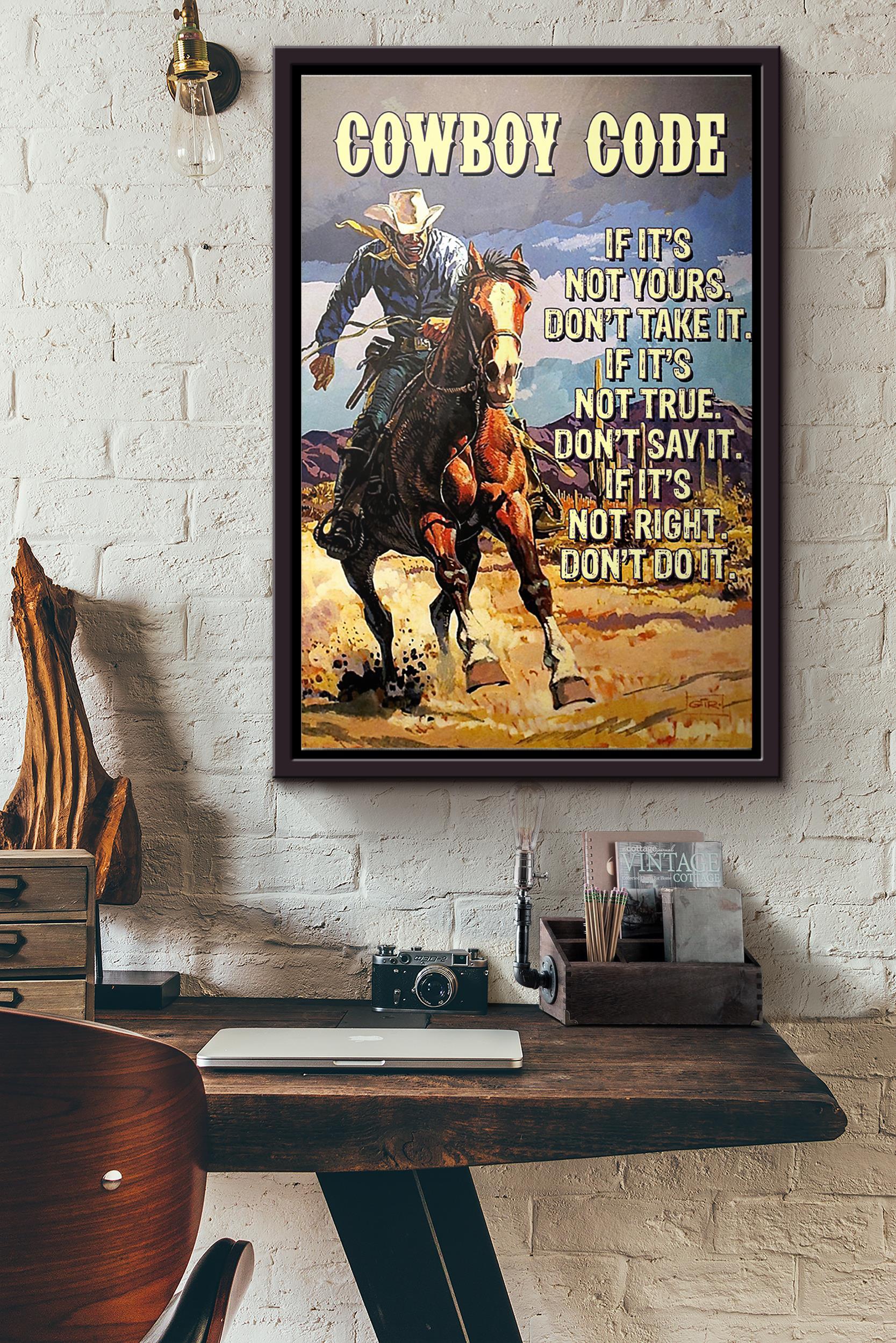 Cowboy Code If Its Not Yours Dont Take It If Its Not True Dont Say It Poster Framed Matte Canvas