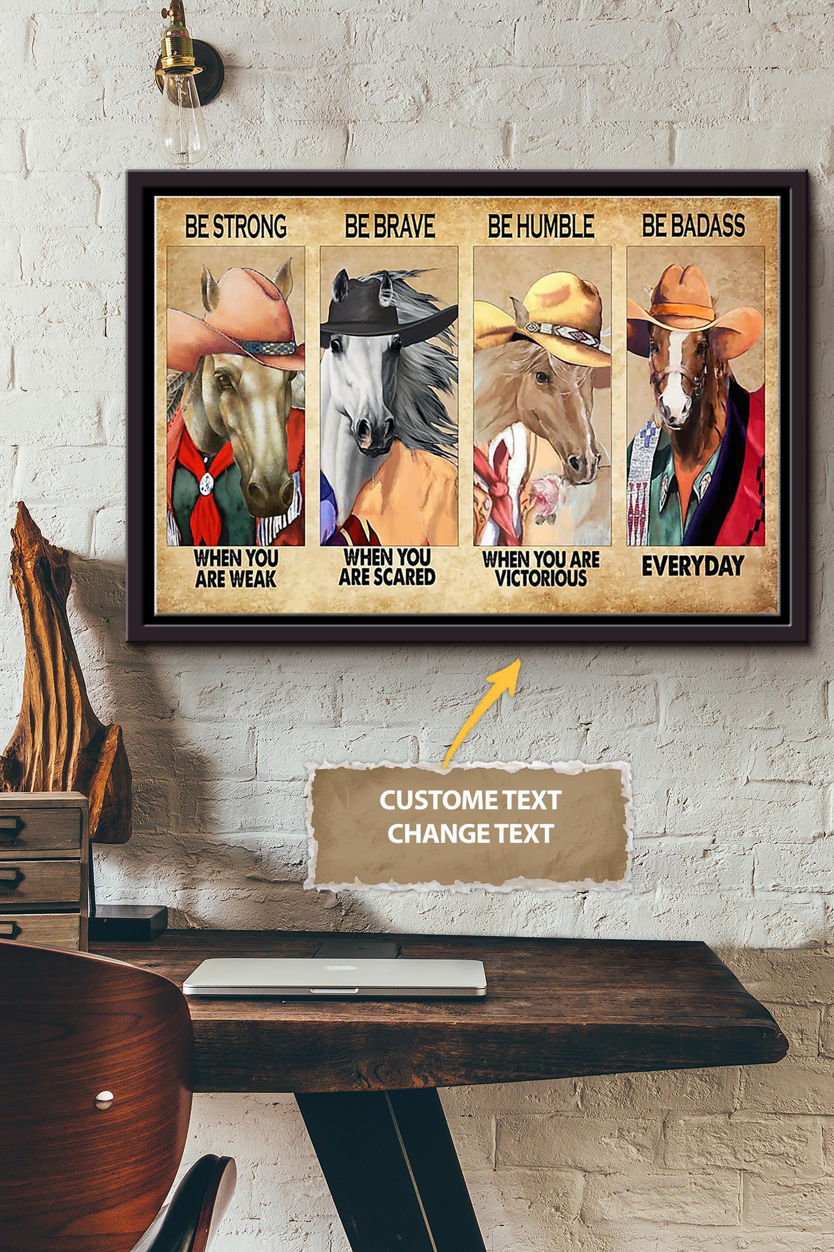 Cowgirl Be Strong Be Brave Poster – Animal Wall Art – Gift For Horse Lover Horse Rider Cowboy Farmhouse Decor Framed Matte Canvas