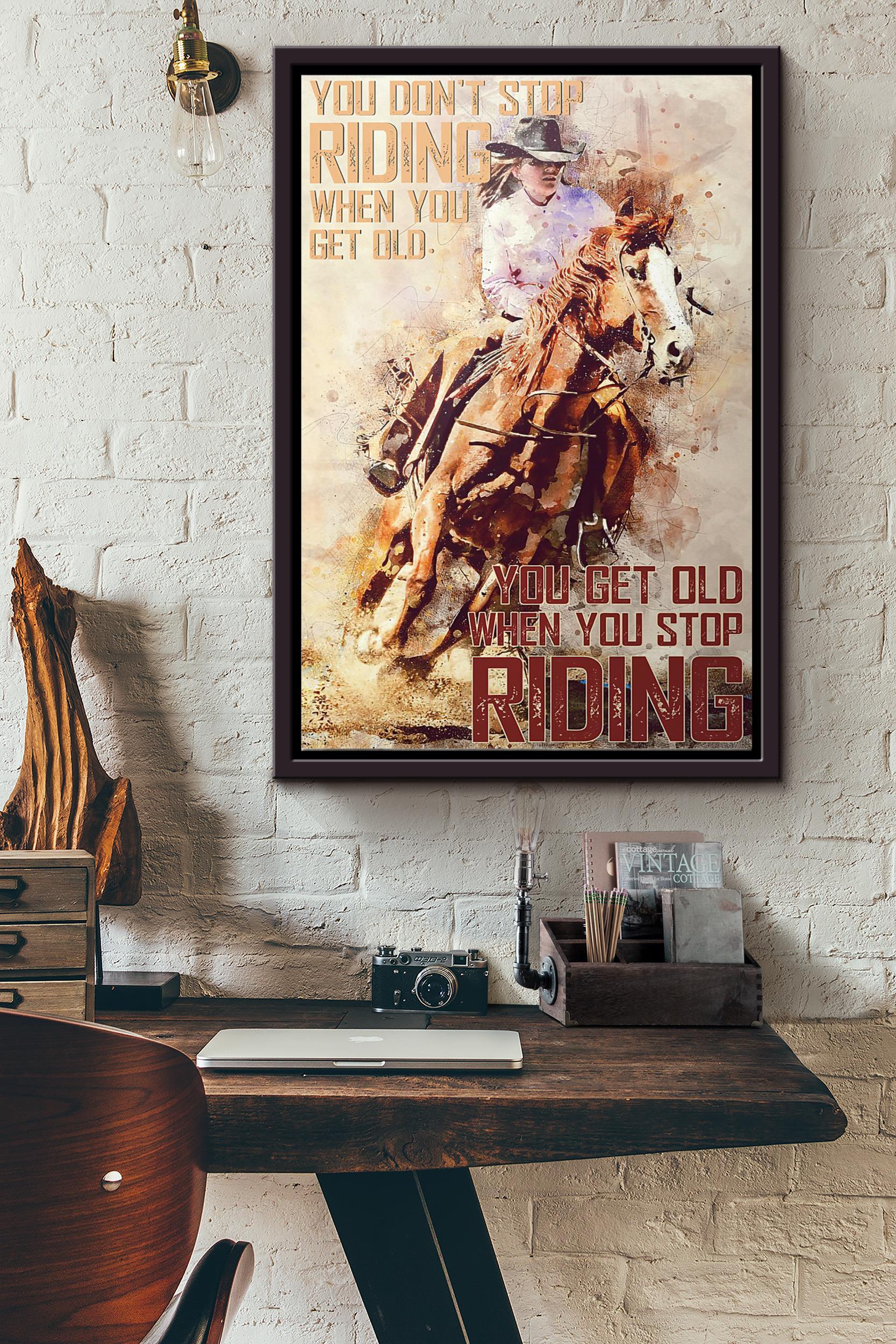 Cowgirl Horse You Dont Stop Riding When You Get Old You Get Old When You Stop Riding Poster Framed Matte Canvas