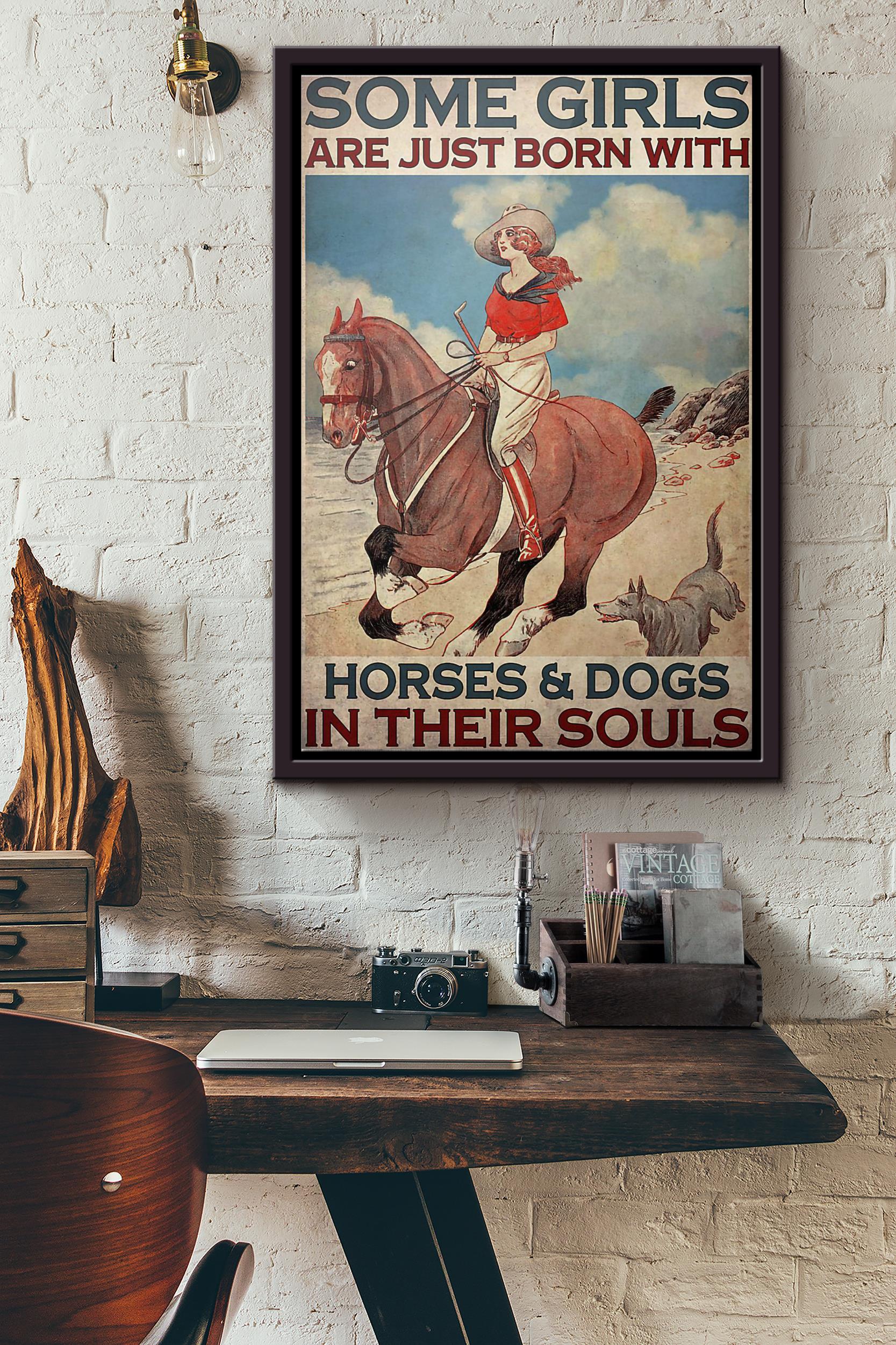 Cowgirl Some Girls Are Just Born With Horses And Dogs In Their Souls Poster Framed Matte Canvas