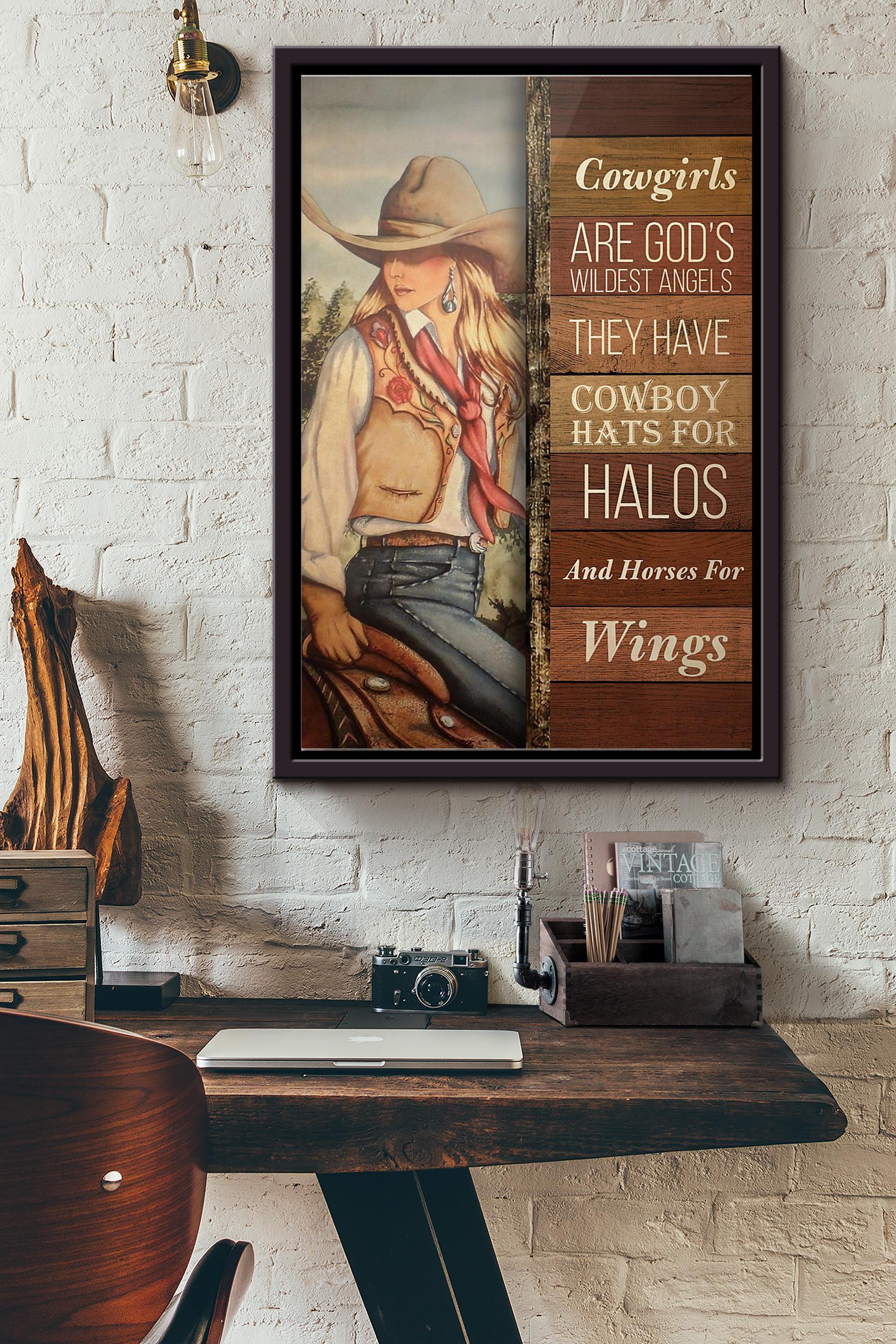Cowgirls Are Gods Wildest Angels They Have Cowboy Hats For Halos Poster Framed Matte Canvas