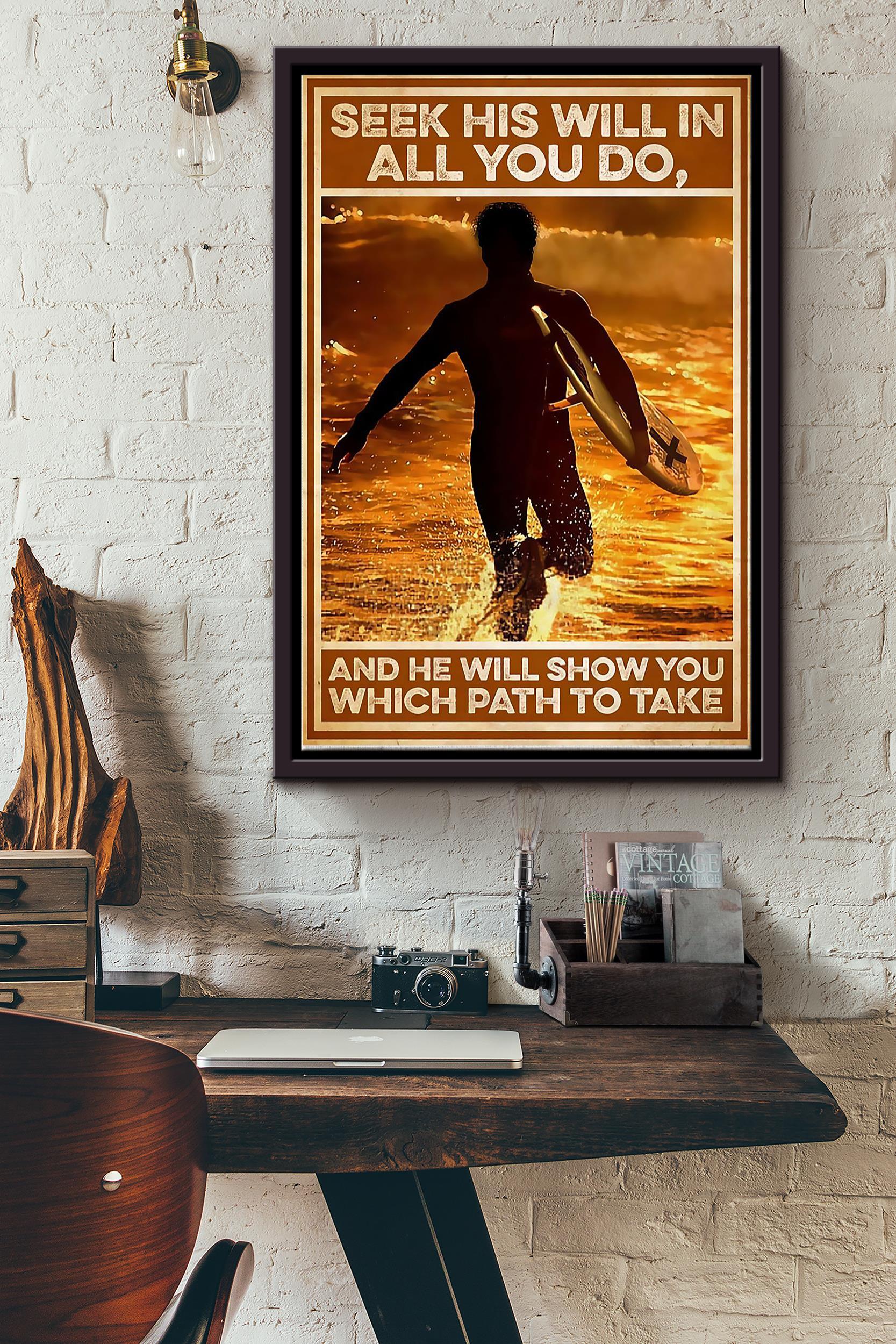 Seek His Will In All You Do And He Will Show You Which Path To Take Surfing Poster Framed Matte Canvas
