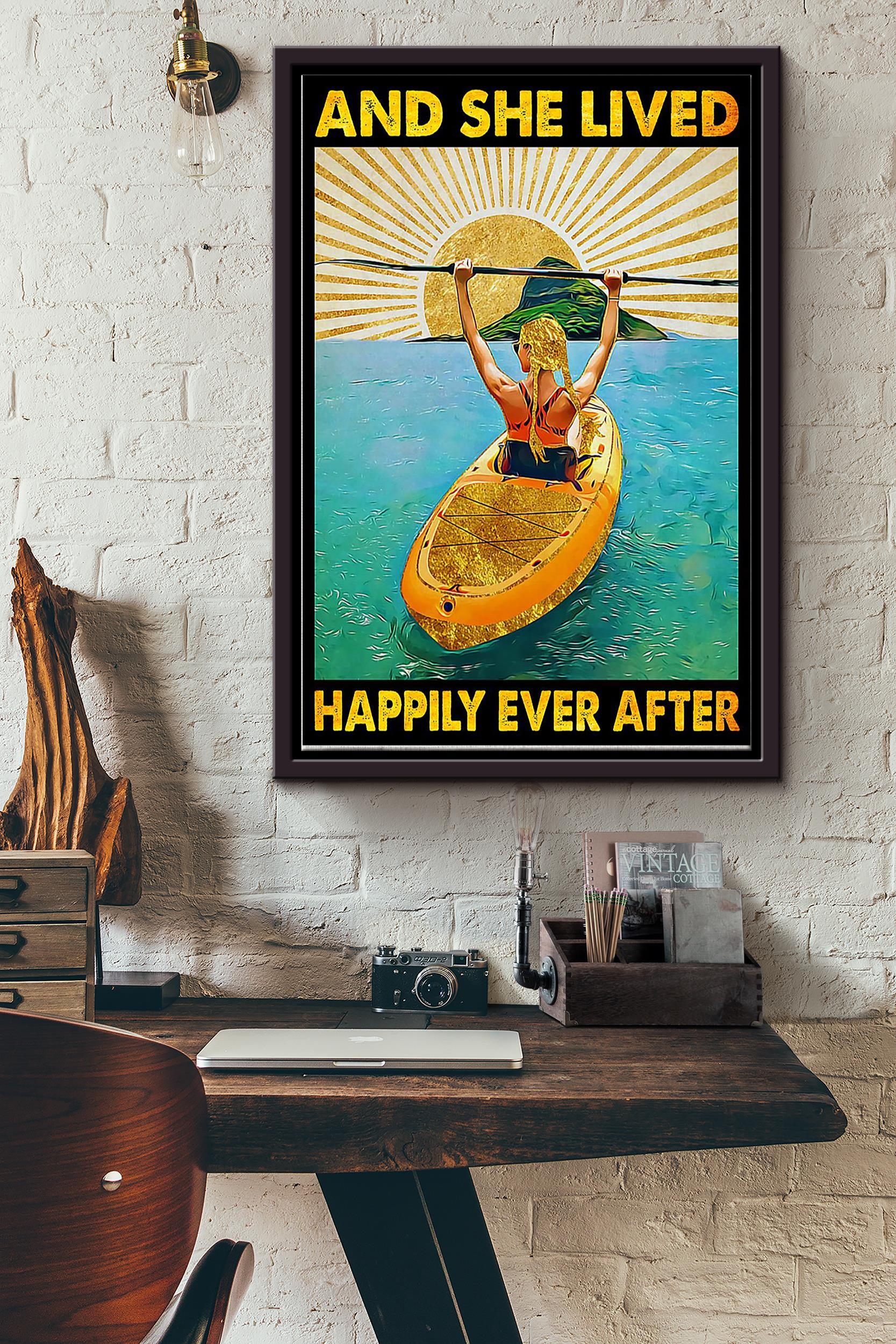 She Goes Kayaking And She Lived Happily Ever After Kayaking Vintage Poster Framed Matte Canvas