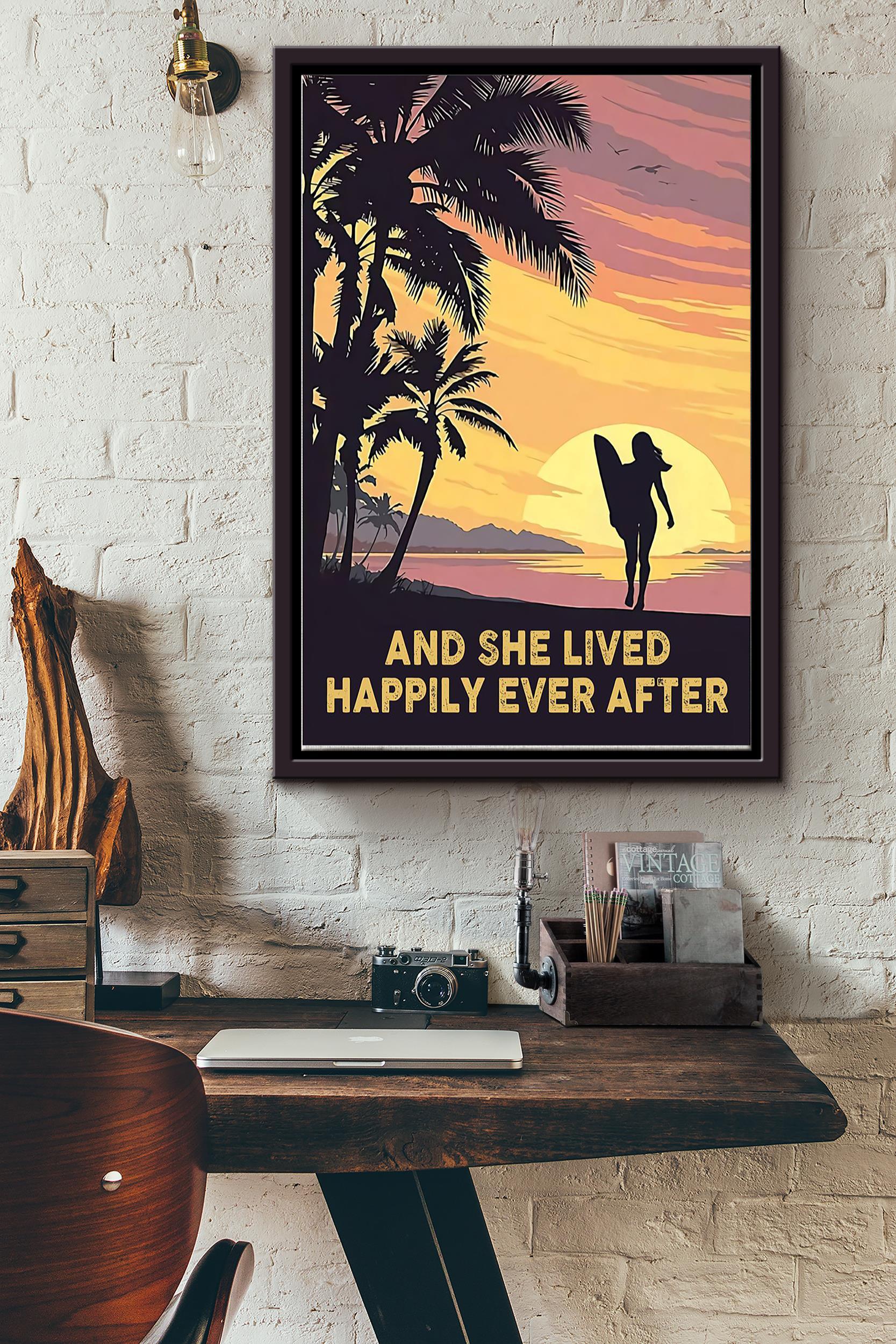 She Goes Surfing And She Lived Happily Ever After Surfing Girl Poster Framed Matte Canvas