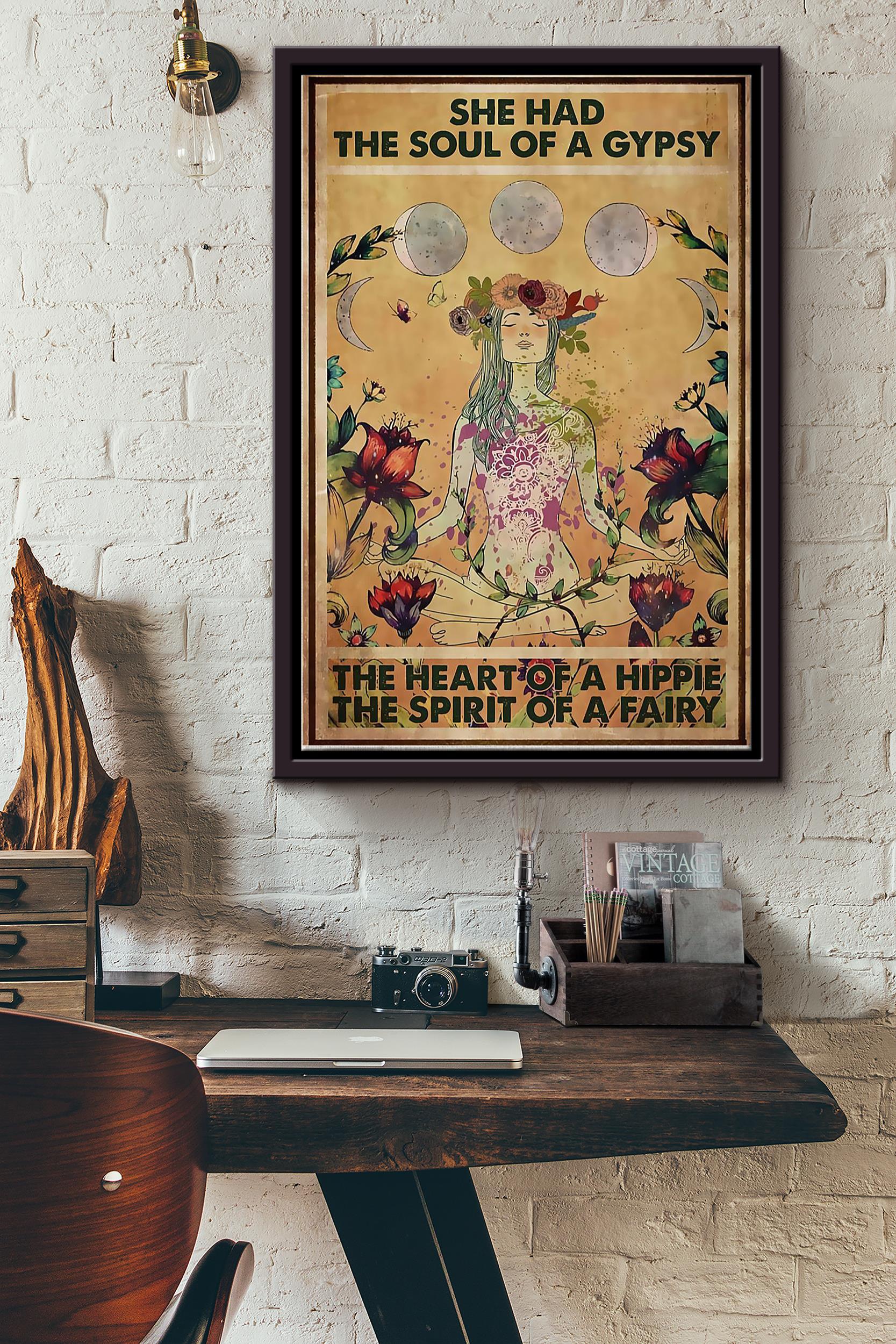 She Had The Soul Of A Gypsy Whe Heart Of A Hippie The Spirit Of A Fairy Hippie Girl With Moon Phase Poster Framed Matte Canvas