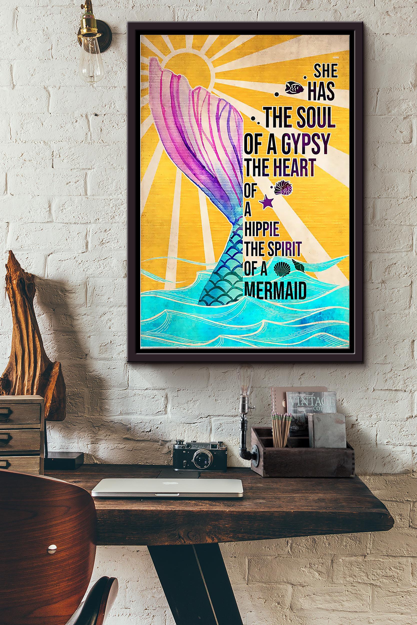 She Has The Soul Of A Gypsy The Heart Of A Hippie The Sprit Of A Mermaid Vintage Poster Framed Matte Canvas