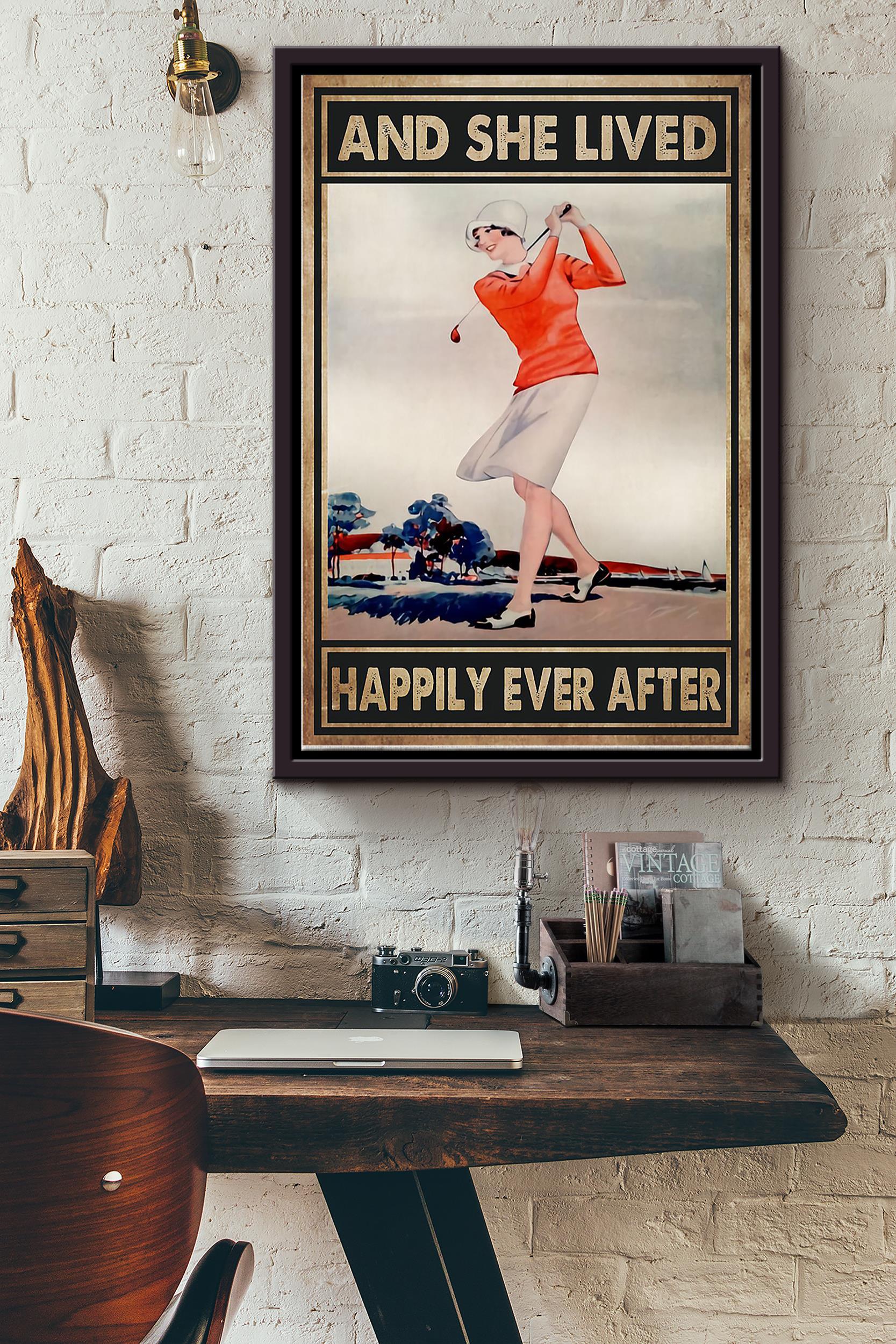 She Plays Golf And She Lived Happily Ever After Poster Framed Matte Canvas