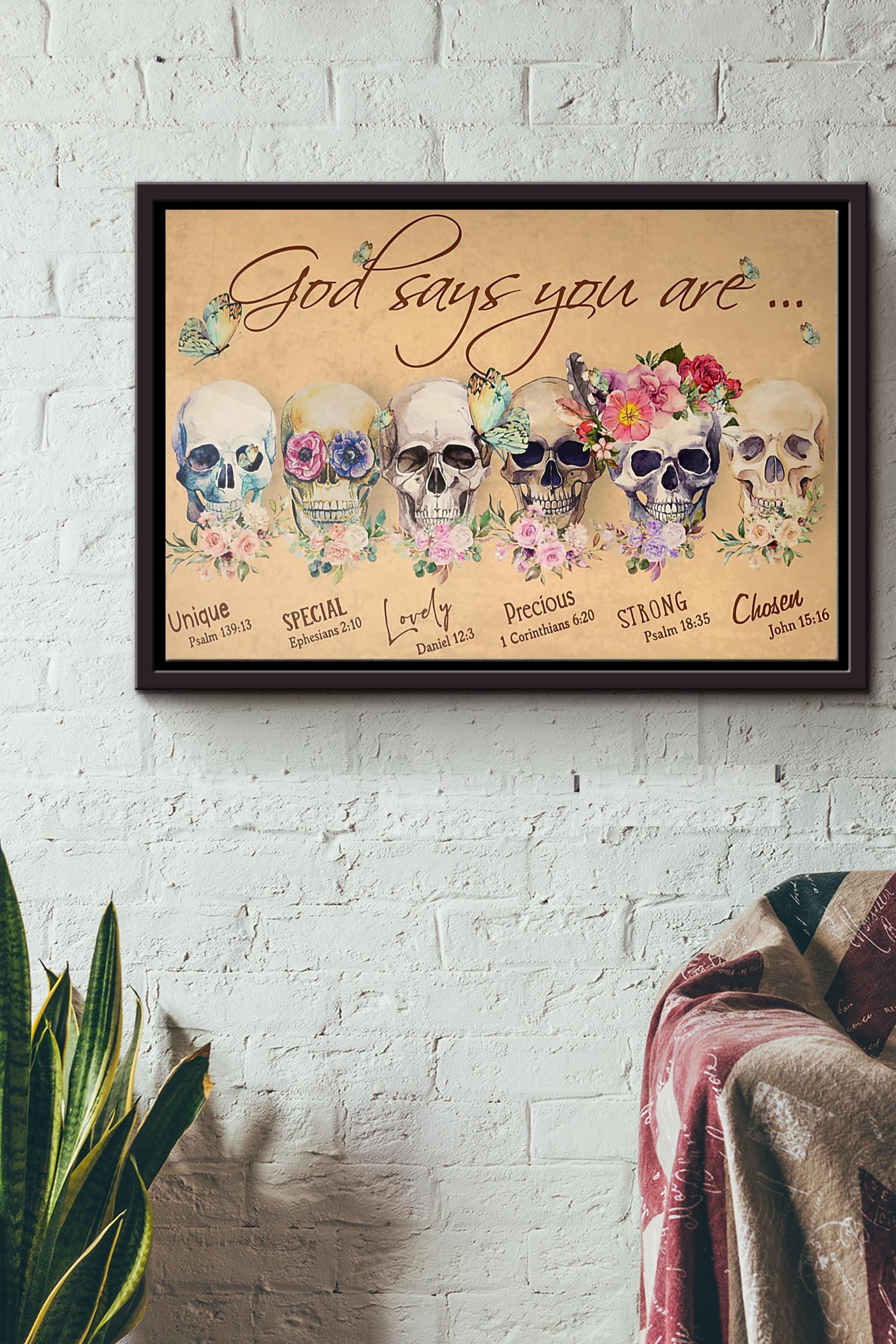 Skull God Says You Are Unique Special Lovely Precious Strong Chosen Poster N Framed Matte Canvas