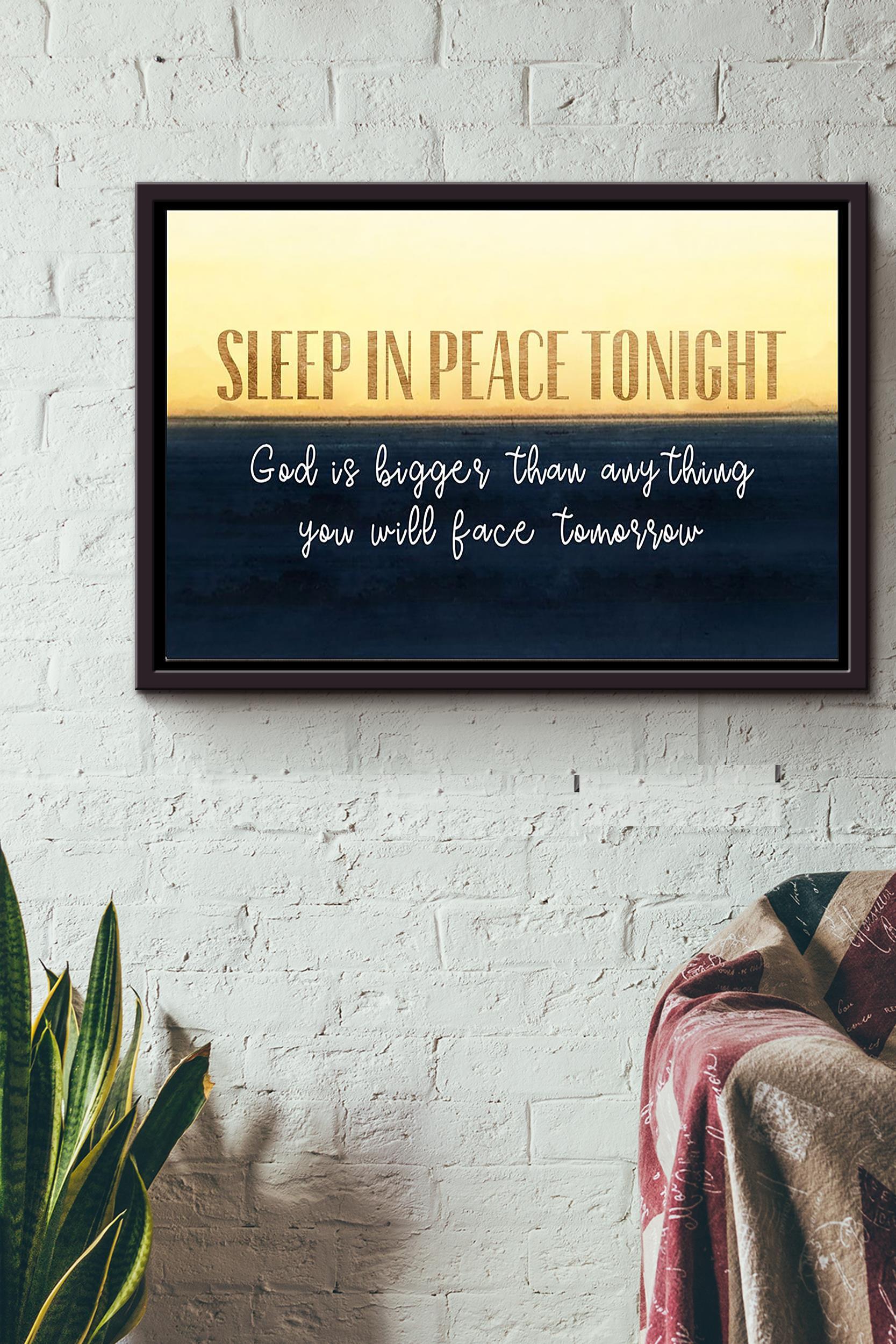 Sleep In Peace Tonight God Is Bigger Than Anything You Will Face Tomorrow Typography Poster N Framed Matte Canvas