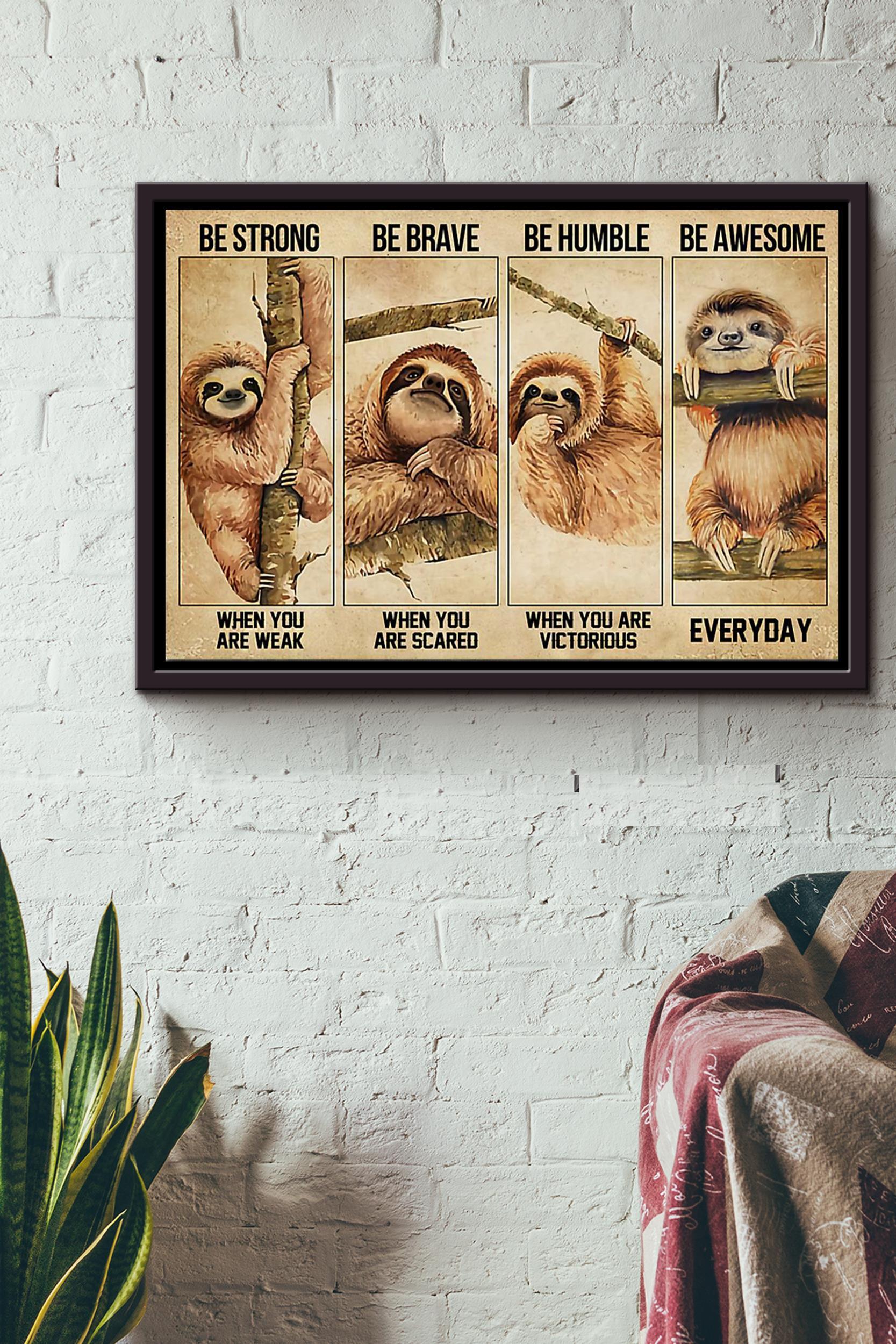 Sloth Be Strong Be Brave Be Humble Be Awesome Poster N Framed Matte Canvas
