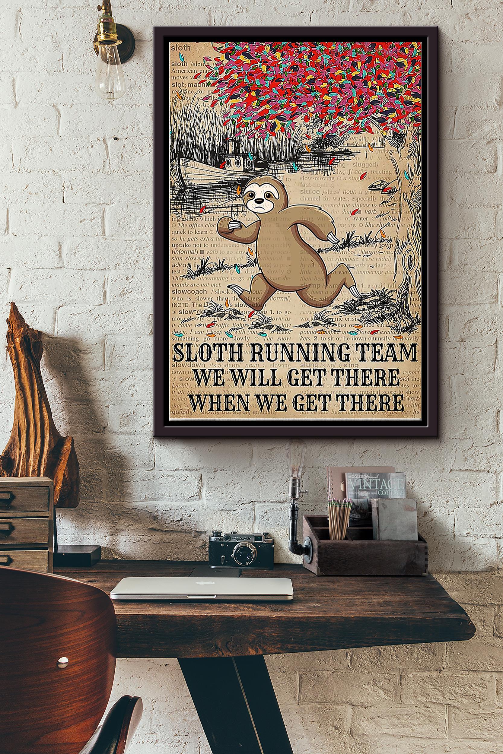 Sloth Running Team We Will Get There When We Get There Sloth Poster Framed Matte Canvas