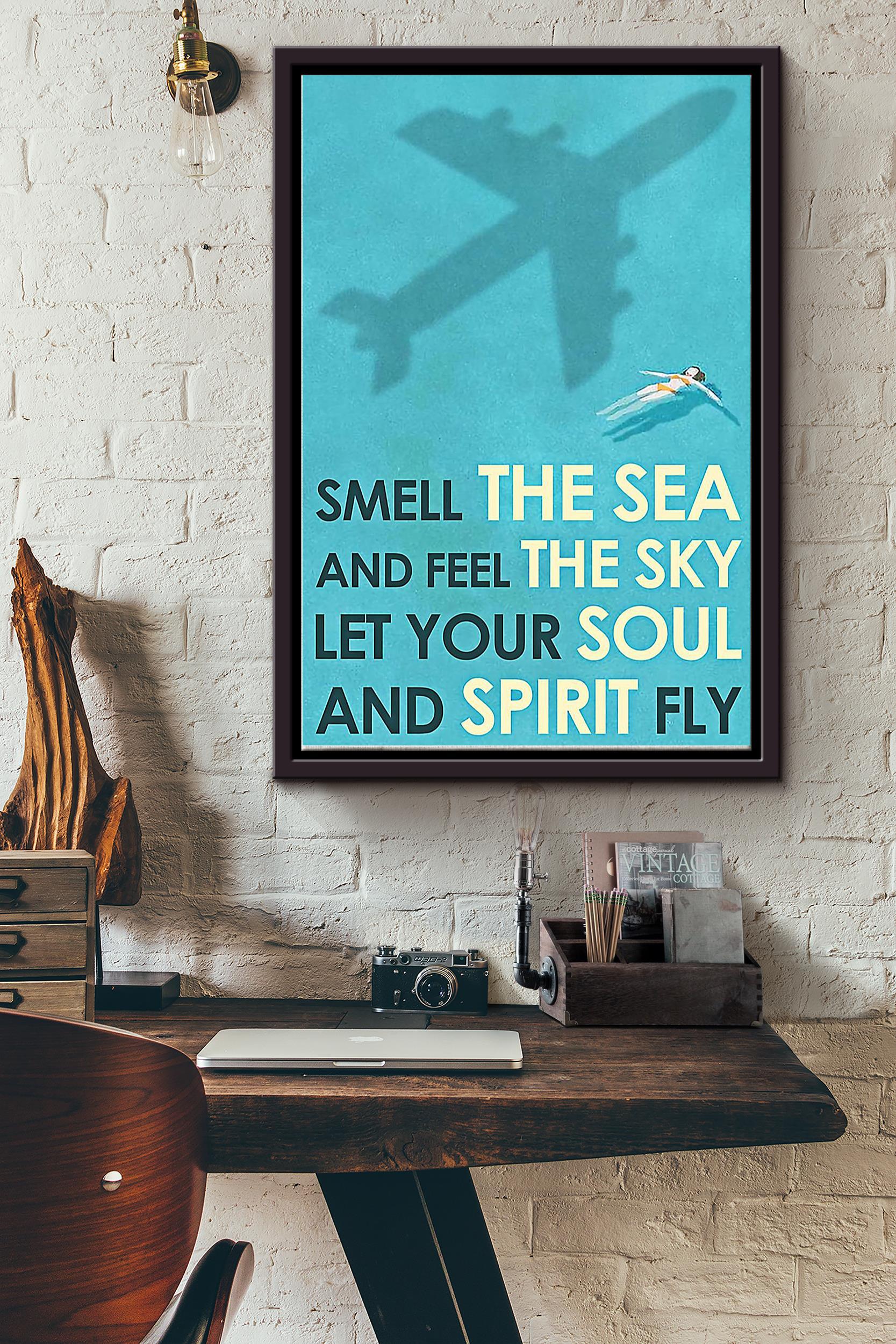 Smell The Sea And Feel The Sky Let Your Soul And Spirit Fly Swimming Poster Framed Matte Canvas