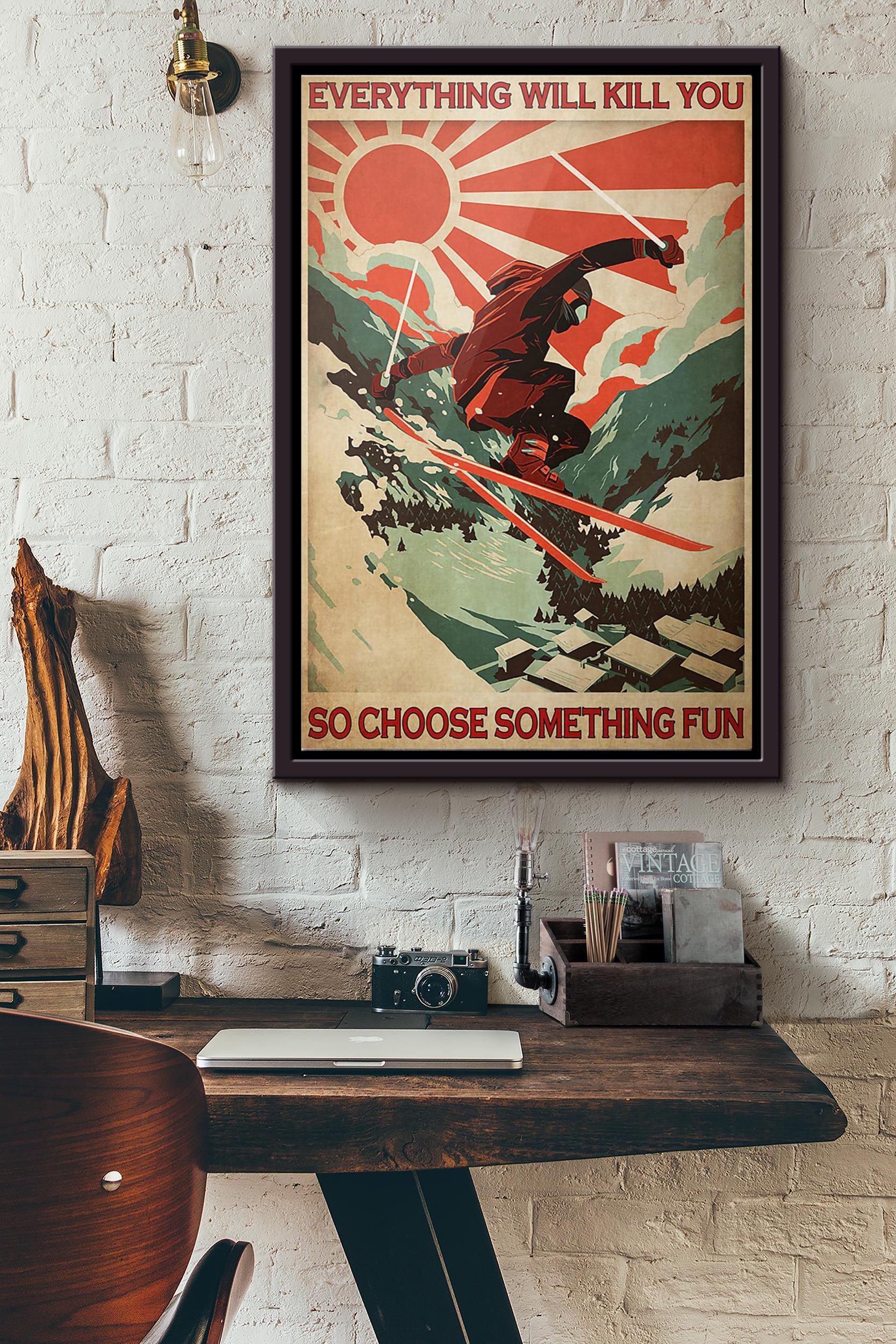 Snowboarding Everything Will Kill You So Choose Something Fun Poster_008 Framed Matte Canvas