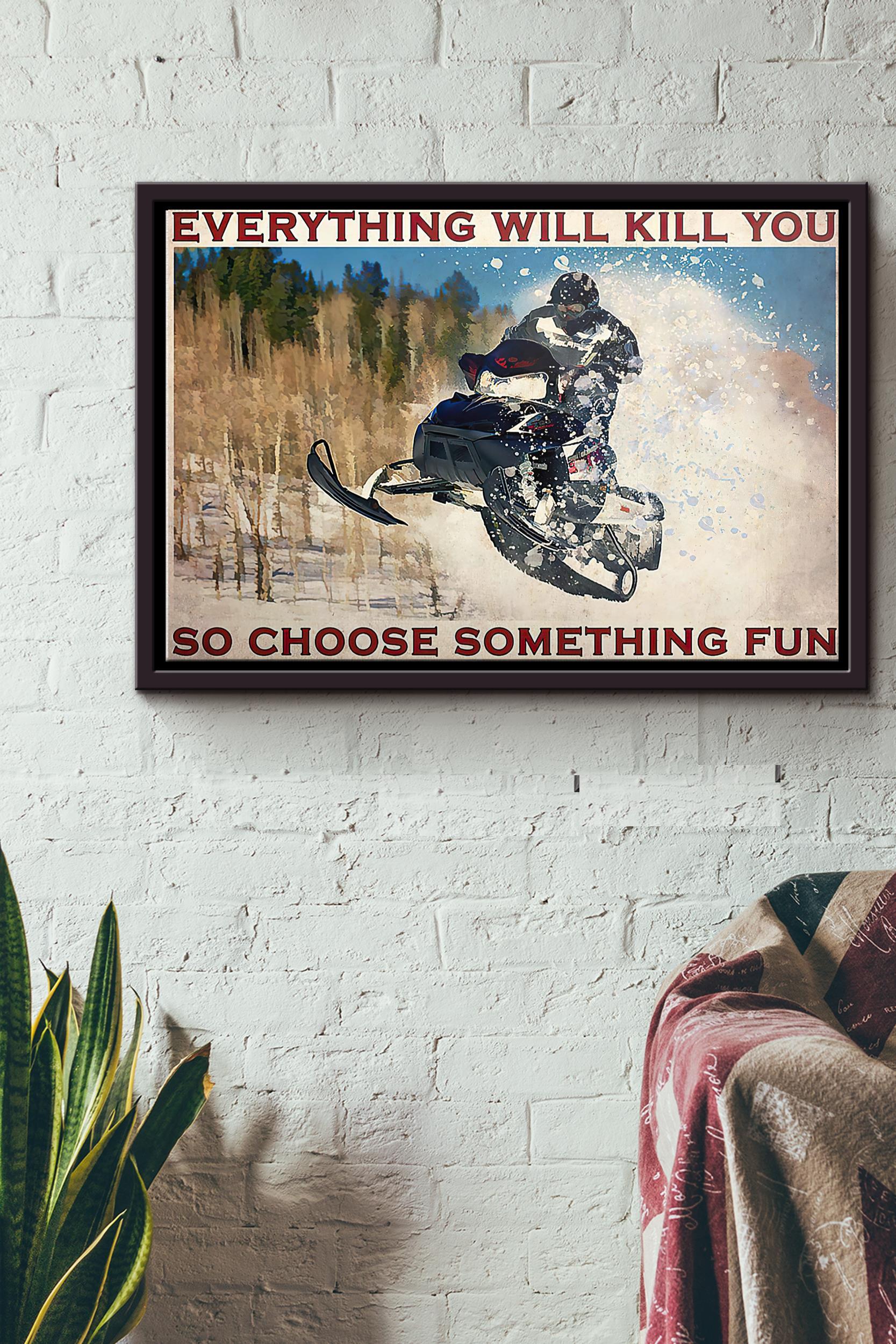 Snowmobile Everything Will Kill You So Choose Something Fun Horizontal Poster N Framed Matte Canvas