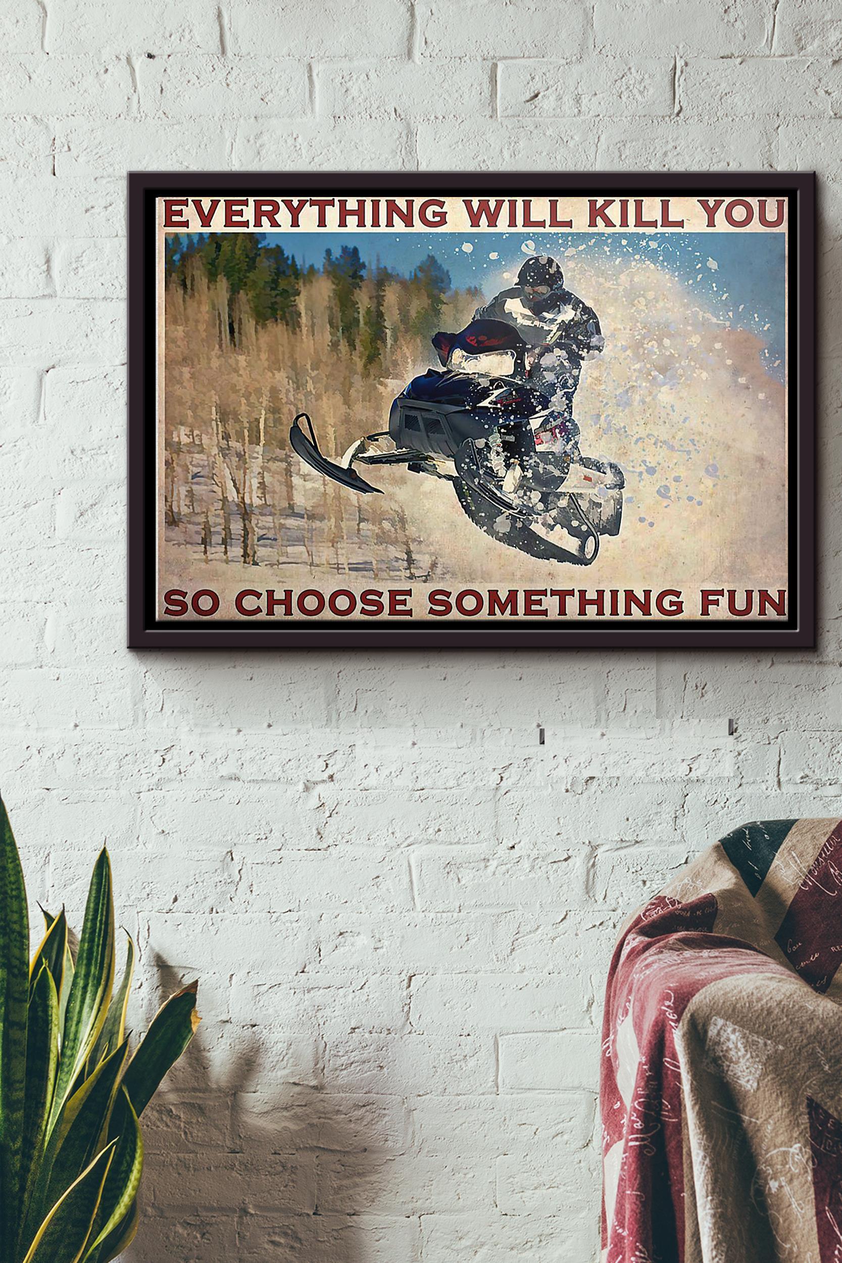 Snowmobile Everything Will Kill You So Choose Something Fun Poster N Framed Matte Canvas