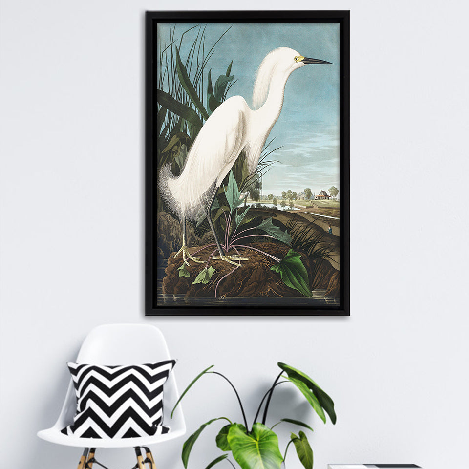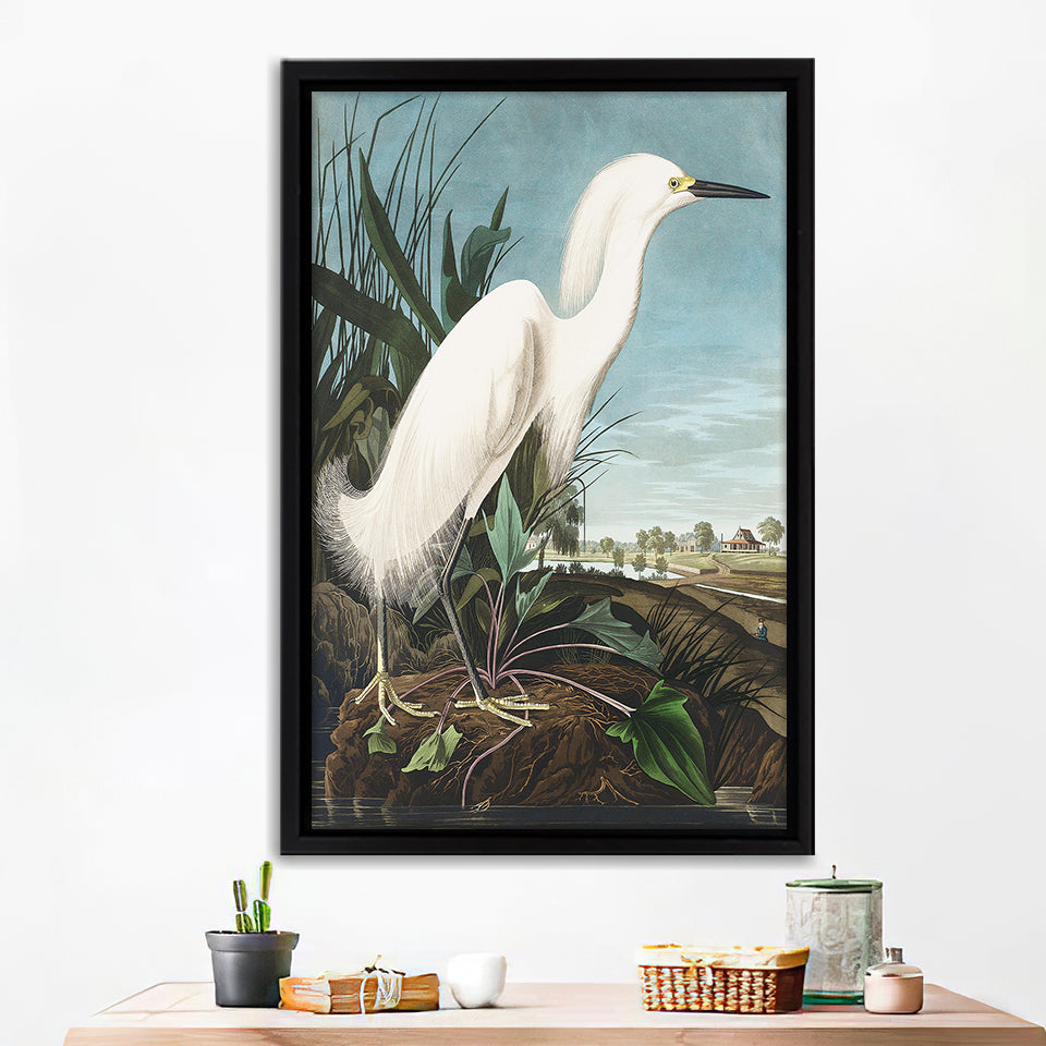 Snowy Heron Framed Canvas Print – Canvas Painting, Canvas Art, Wall Art, Wall Decor