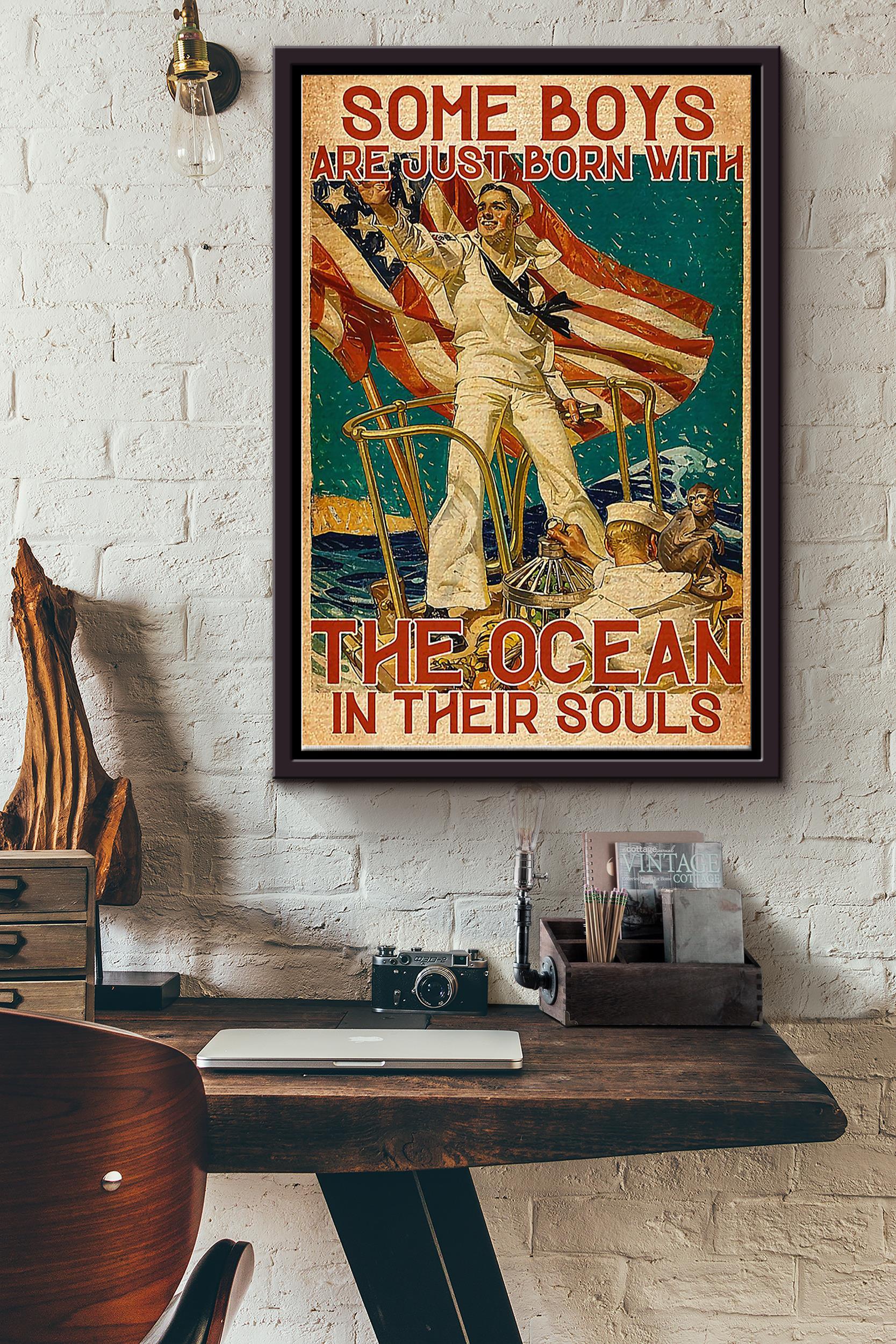 Some Boys Are Just Born With The Ocean In Their Souls American Sailor Poster Framed Matte Canvas