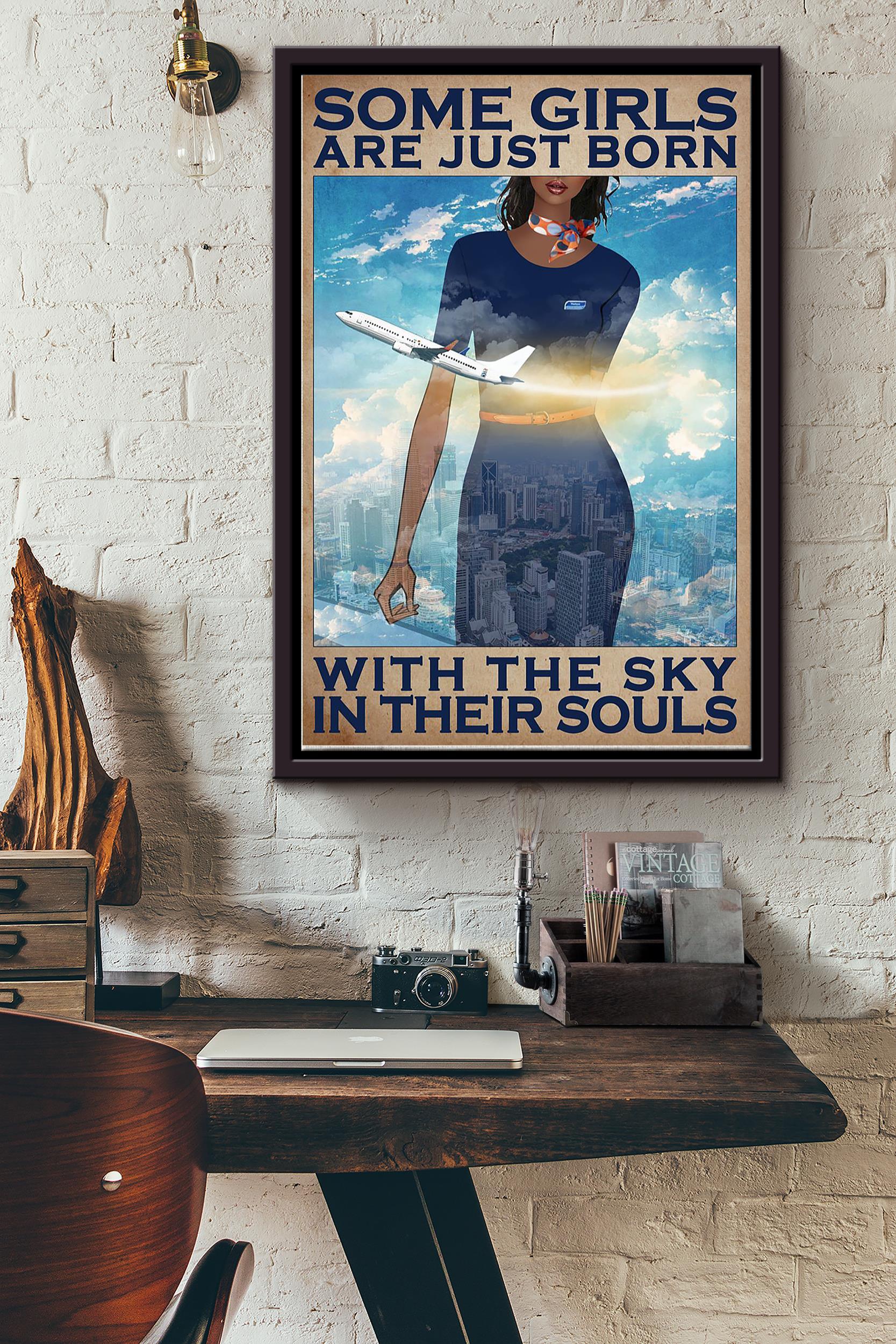Some Girl Are Just Born With The Sky In Their Souls American Female Flight Attendant Poster Framed Matte Canvas