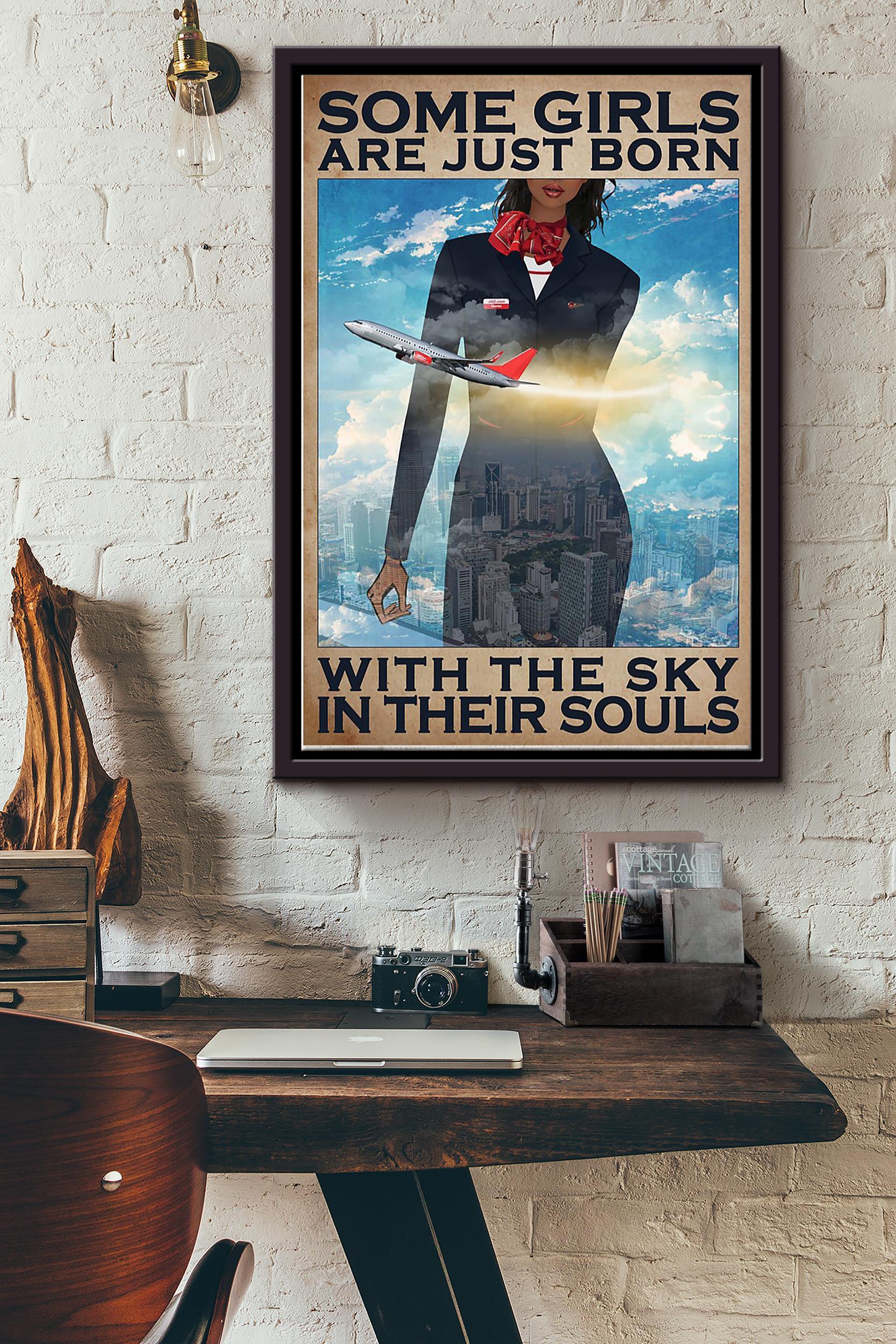 Some Girl Are Just Born With The Sky In Their Souls Mexico Female Flight Attendant Poster Framed Matte Canvas