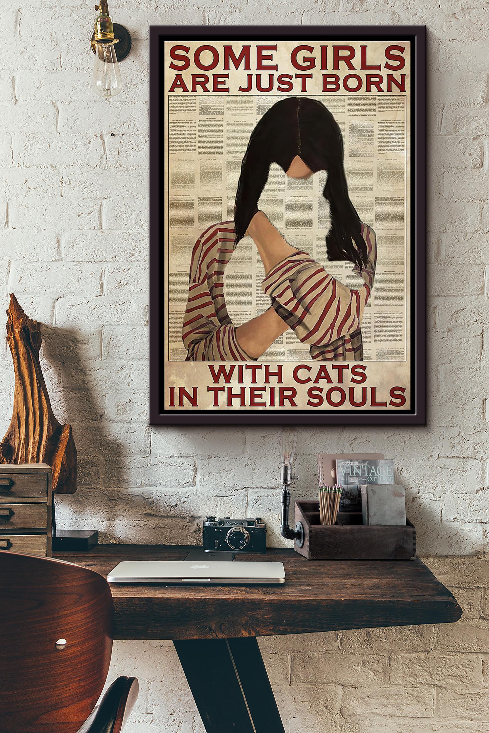 Some Girls Are Just Born With Cats In Their Souls Dictionary Poster Framed Matte Canvas