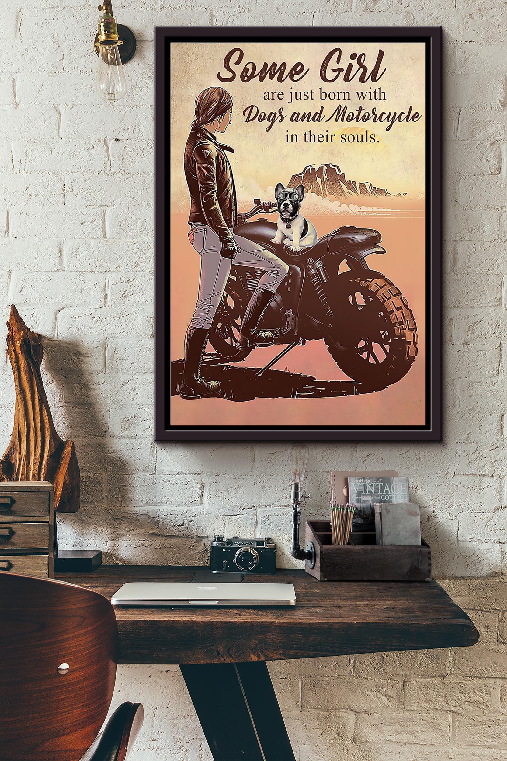 Some Girls Are Just Born With Dogs And Motorcycle In Their Souls Poster Framed Matte Canvas