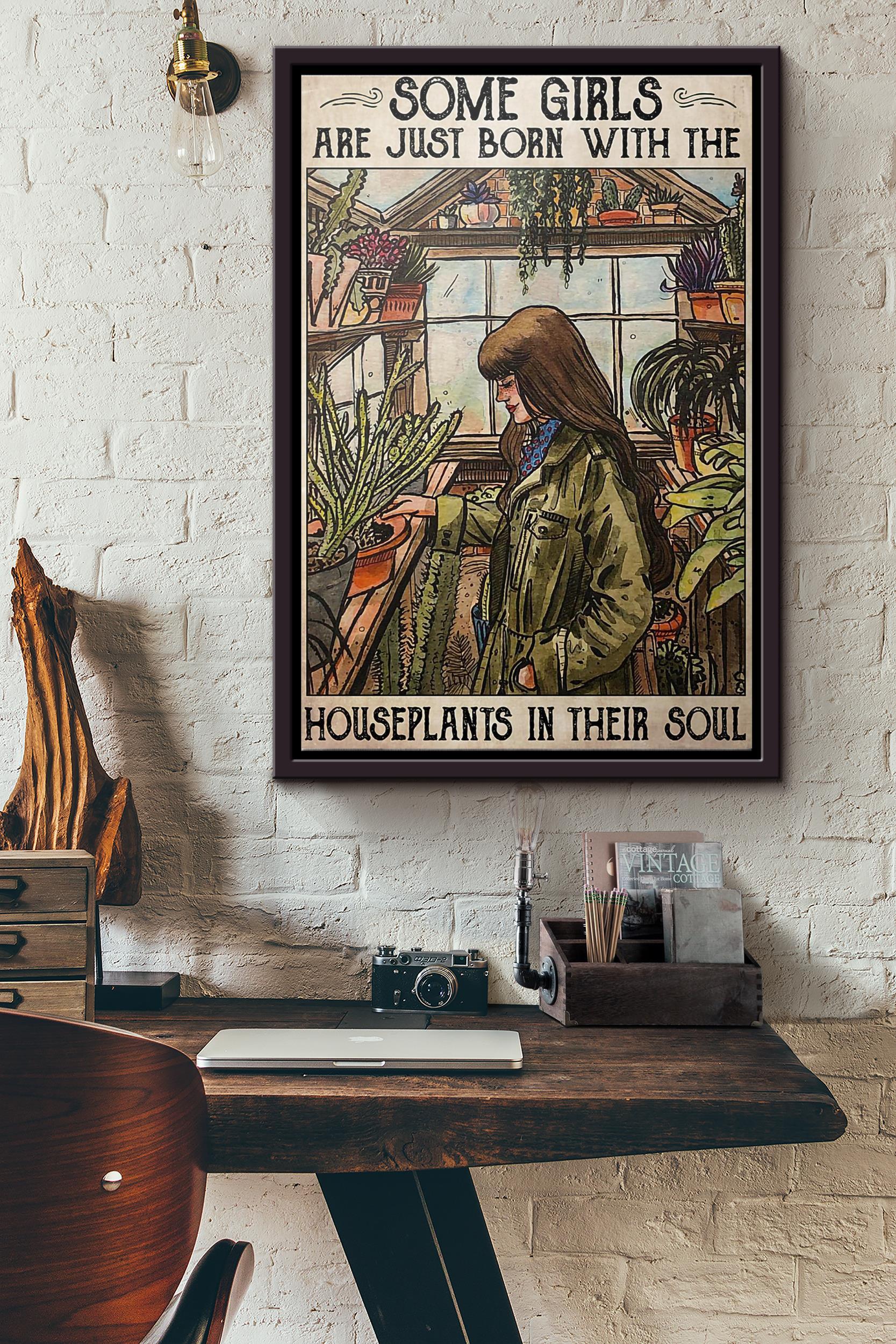 Some Girls Are Just Born With Houseplants In Their Souls Poster Framed Matte Canvas