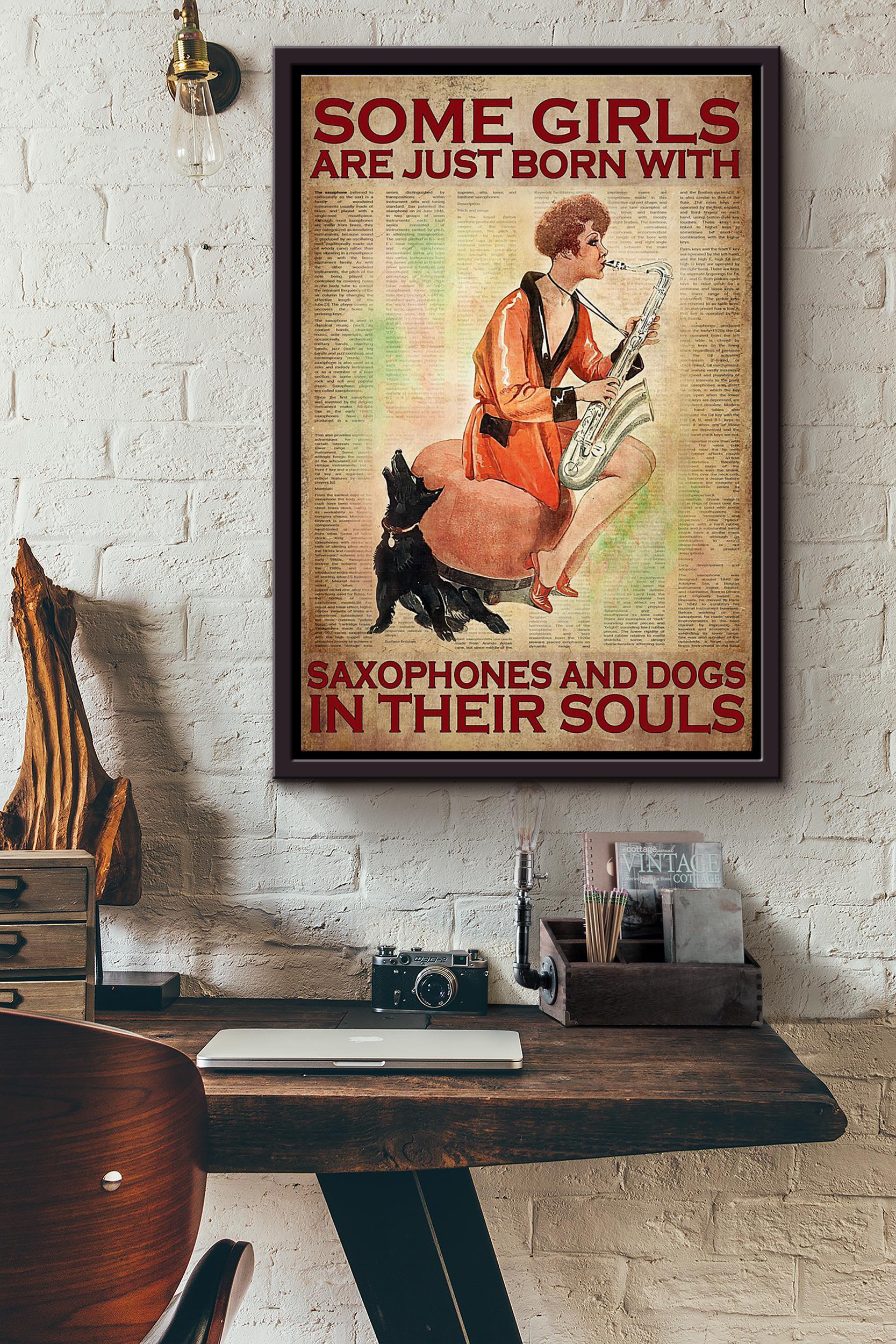 Some Girls Are Just Born With Saxophones And Dogs In Their Souls Poster Framed Matte Canvas