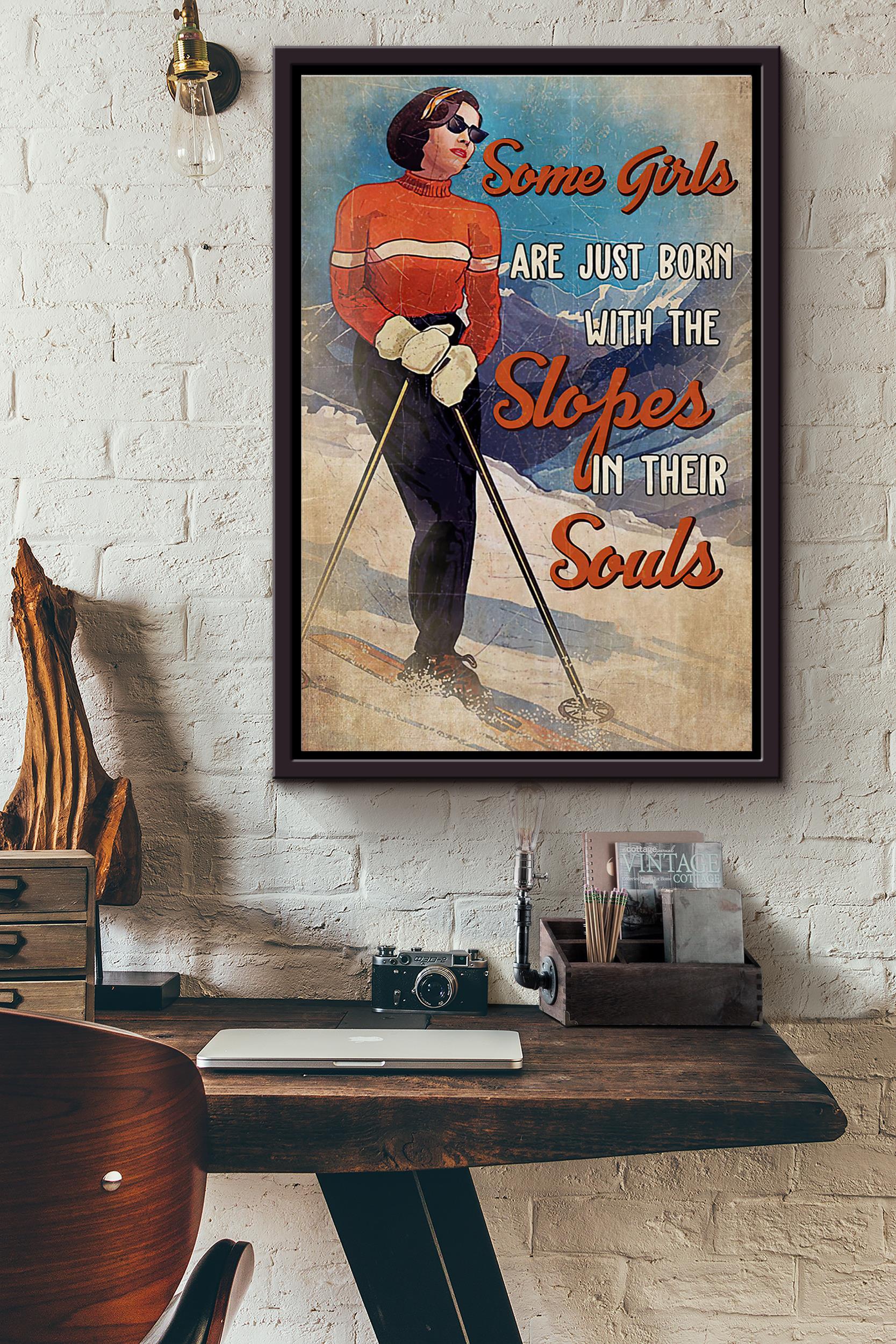 Some Girls Are Just Born With The Slopes In Their Souls Skiing Poster Framed Matte Canvas