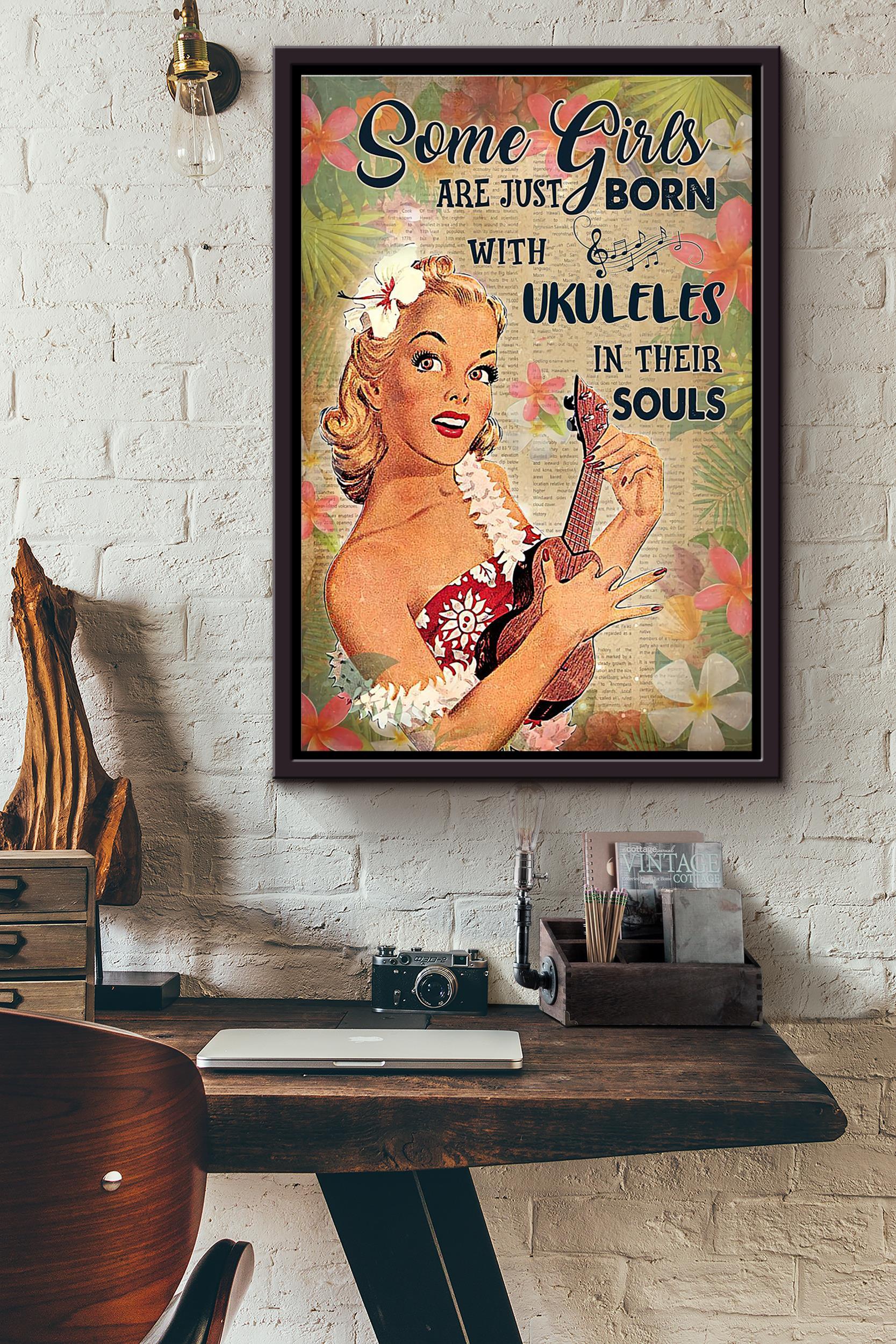 Some Girls Are Just Born With Ukuleles In Their Souls Poster Framed Matte Canvas
