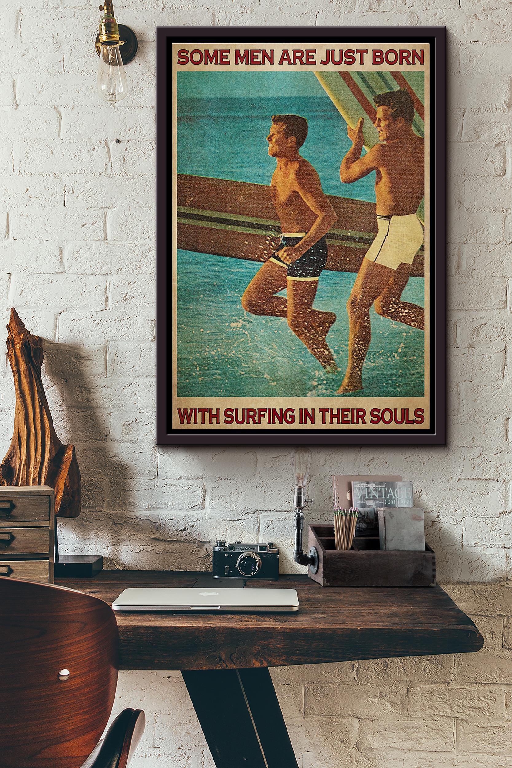 Some Men Born With Surfing In Their Souls Poster Framed Matte Canvas