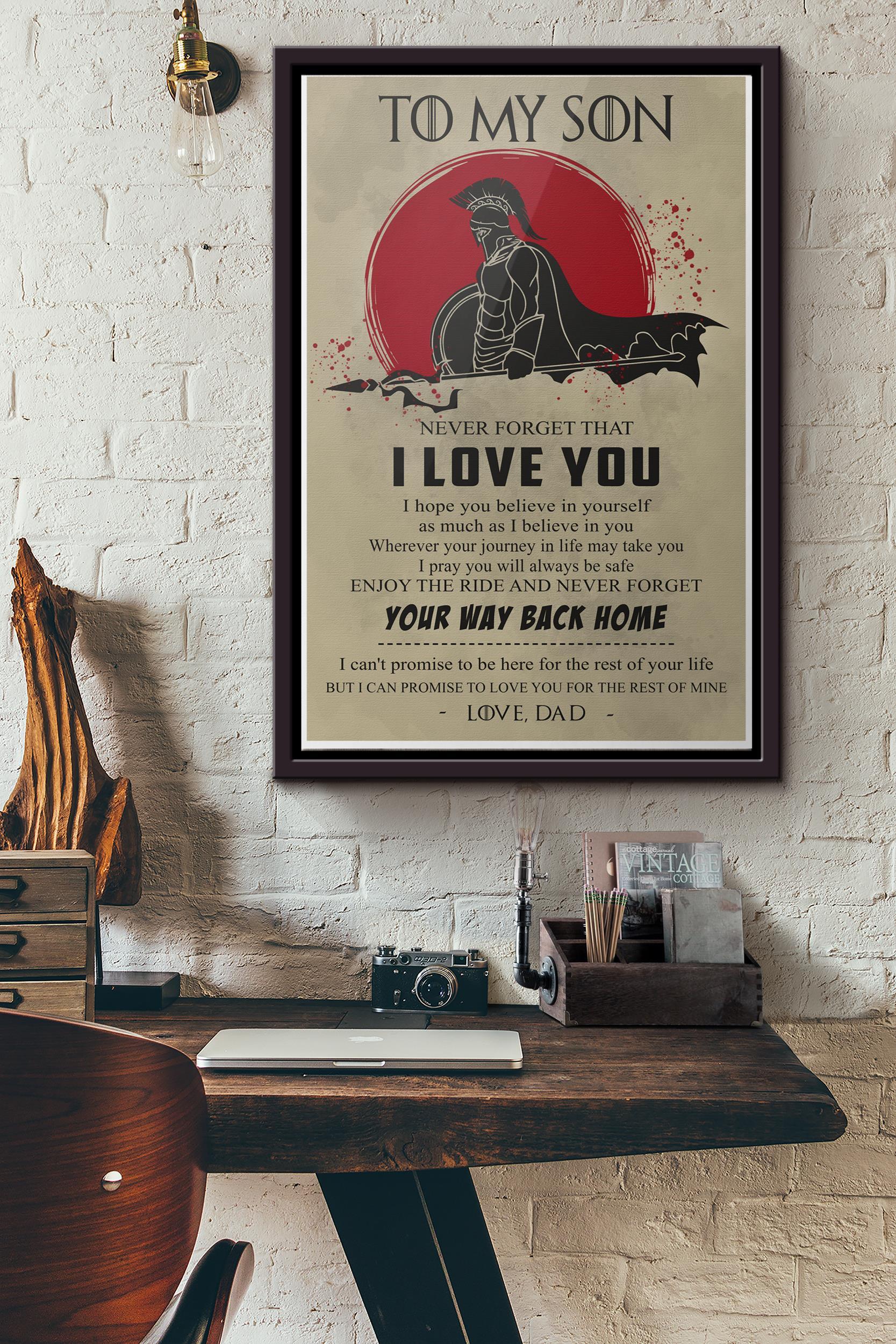 Spartan Warrior To My Son Never Forget That I Love You Poster Framed Matte Canvas