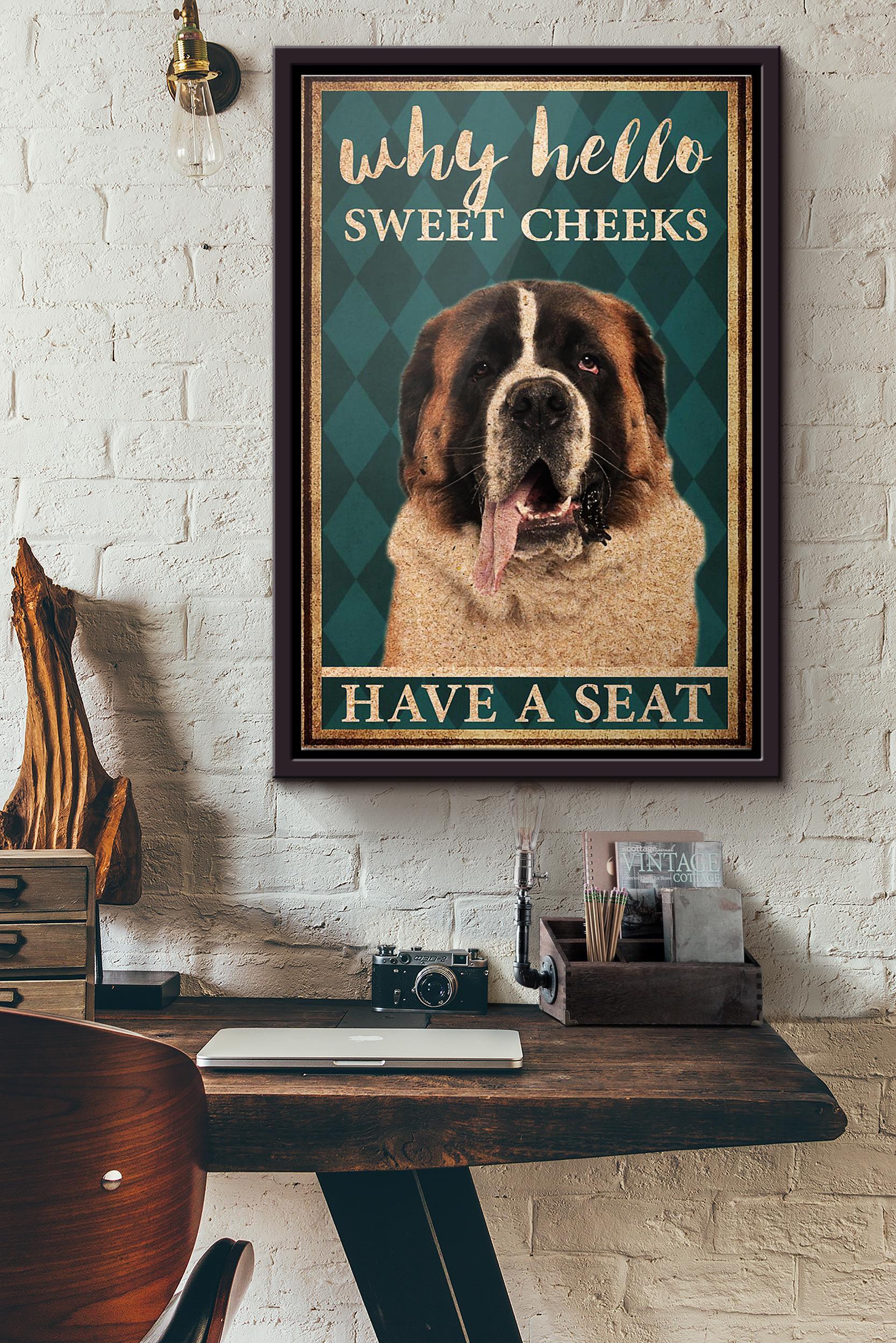 St Bernard Why Hello Sweet Cheeks Have A Seat Poster Framed Matte Canvas
