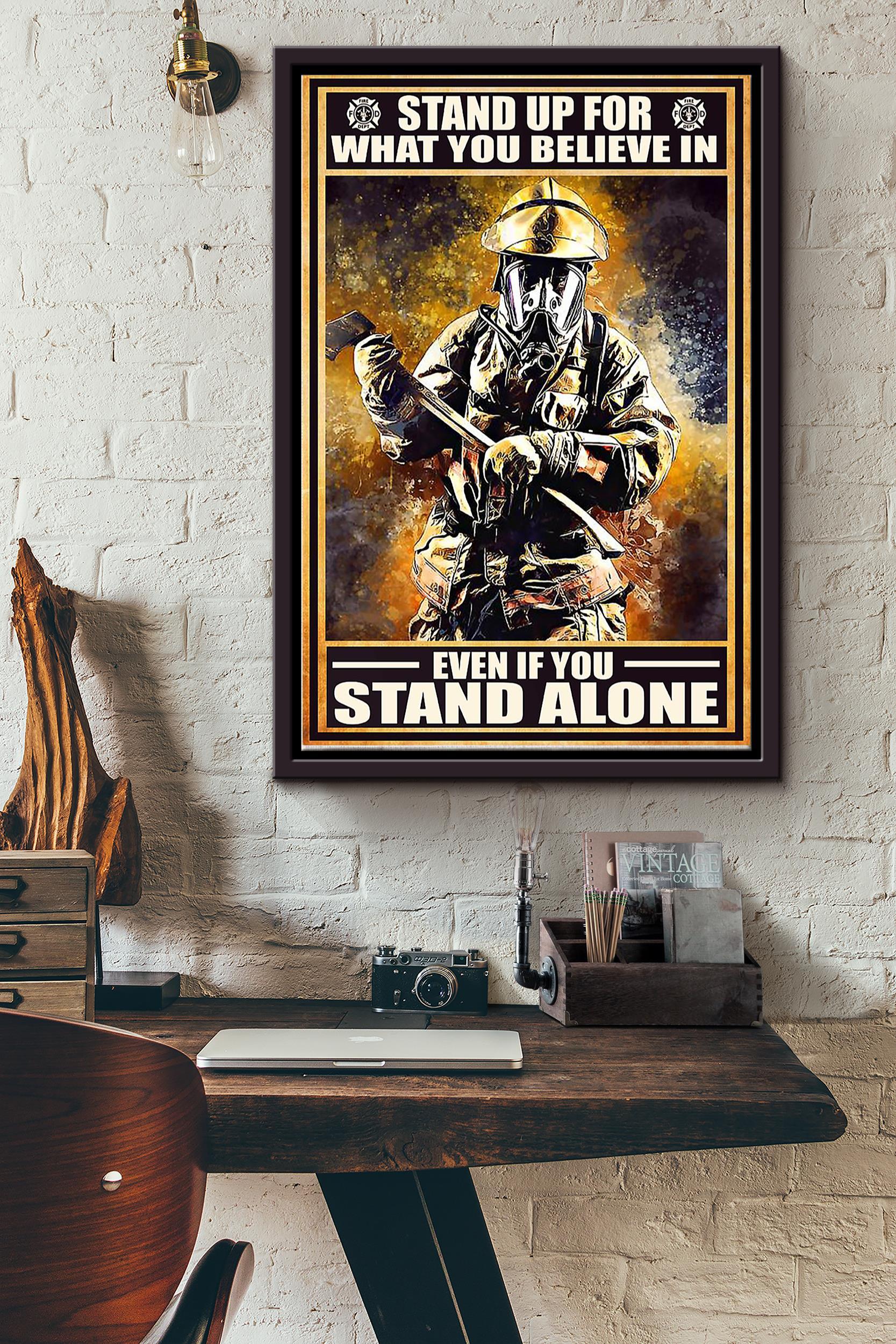 Stand Up For What You Believe In Even If You Stand Alone Firefighter Poster Framed Matte Canvas
