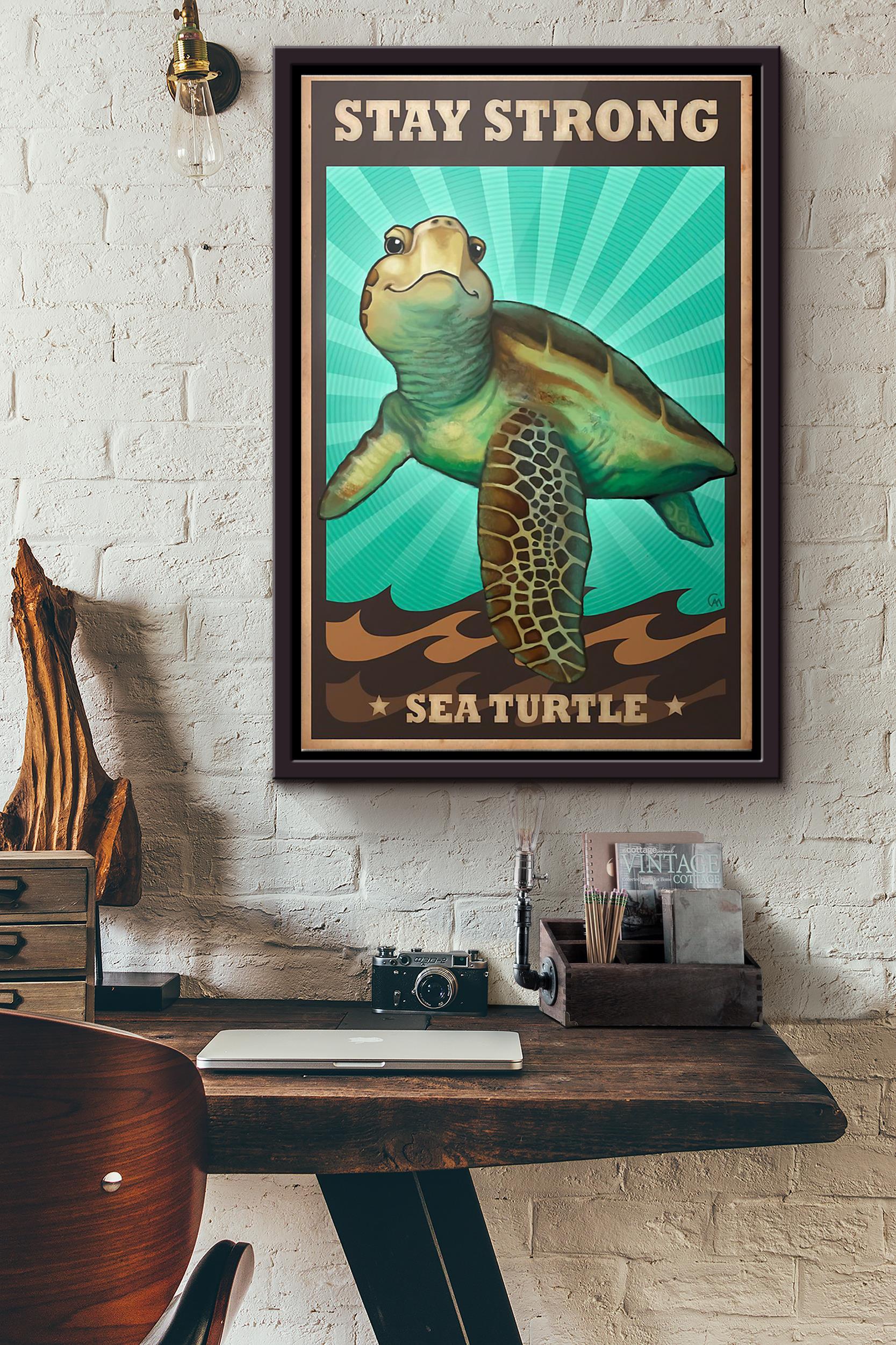 Stay Strong Sea Turtle Poster Framed Matte Canvas