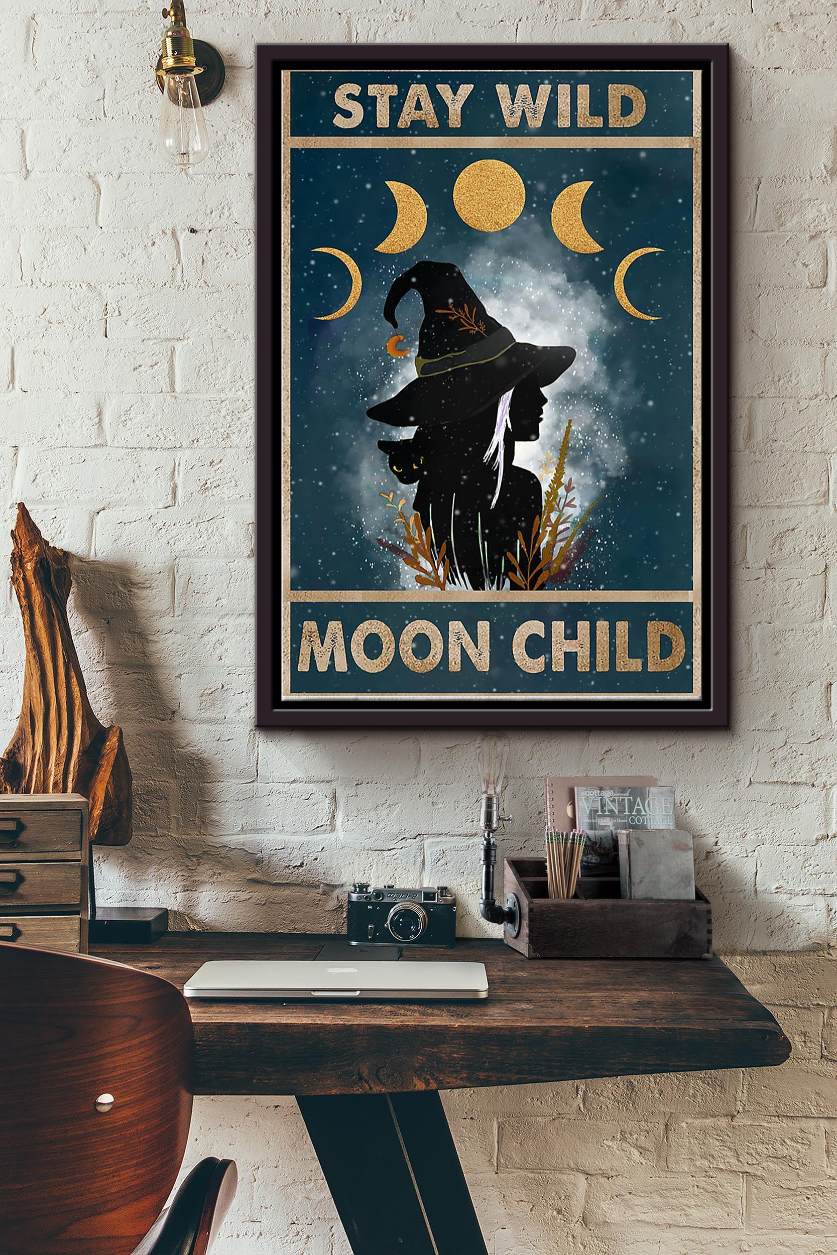 Stay Wild Moon Child Girl With Moon Phase Poster Framed Matte Canvas