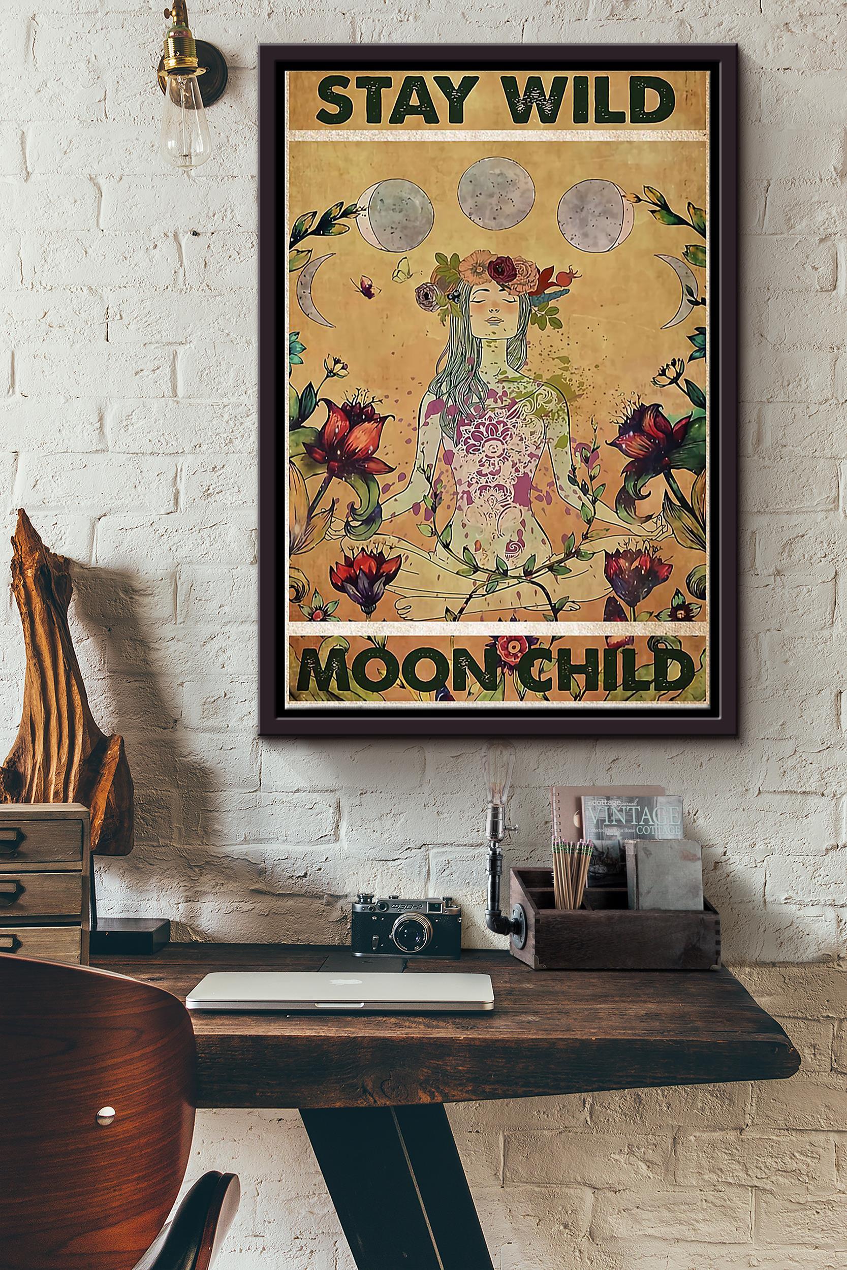 Stay Wild Moon Child Girl With Three Moon Poster Framed Matte Canvas